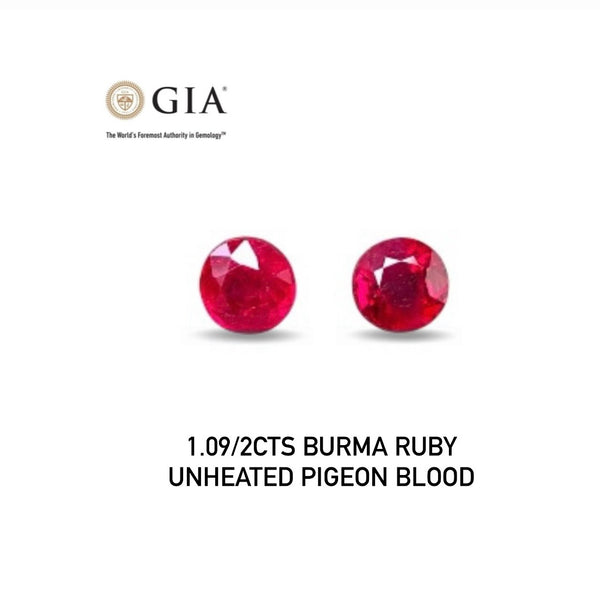 1.03 Cts GlA Certified Unheated Pigeon Blood Burma Burmese Mogok Ruby Pair RMC32
