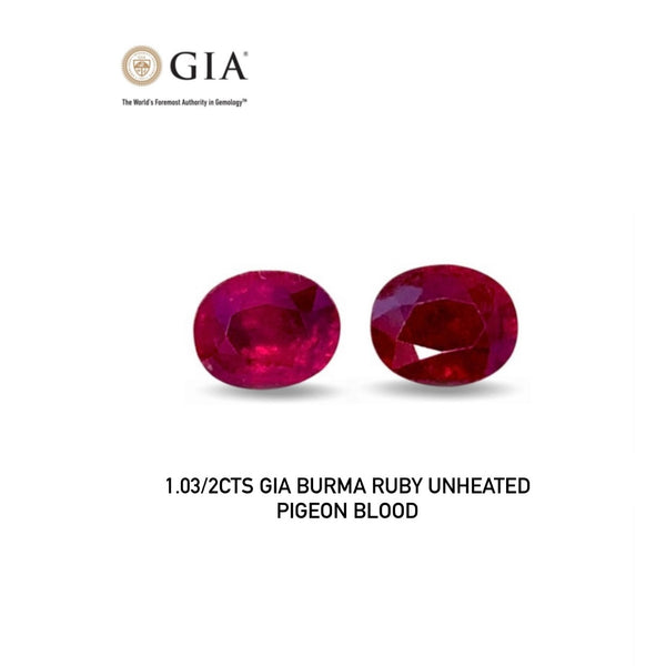 1.03 Carat Unheated Burma Ruby Pair - Exquisite Oval Cut Gemstones Immerse yourself in the captivating allure of this stunning pair of 1.03 carat unheated Burma rubies. Known for their...