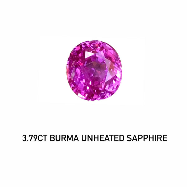 Natural unheated sapphire Burmese burma vivid purple3.79ct Guild Certified gemstoneWeight: 3.79 ctColor: vivid purpleClarity: 98% eye cleanOrigins: Burma Cutting: good Treatment: noneDimensions: 8.6x7.8x6.2Certificate: Guild WB Gems Precision Cut Factory (Thailand)...