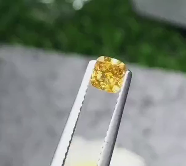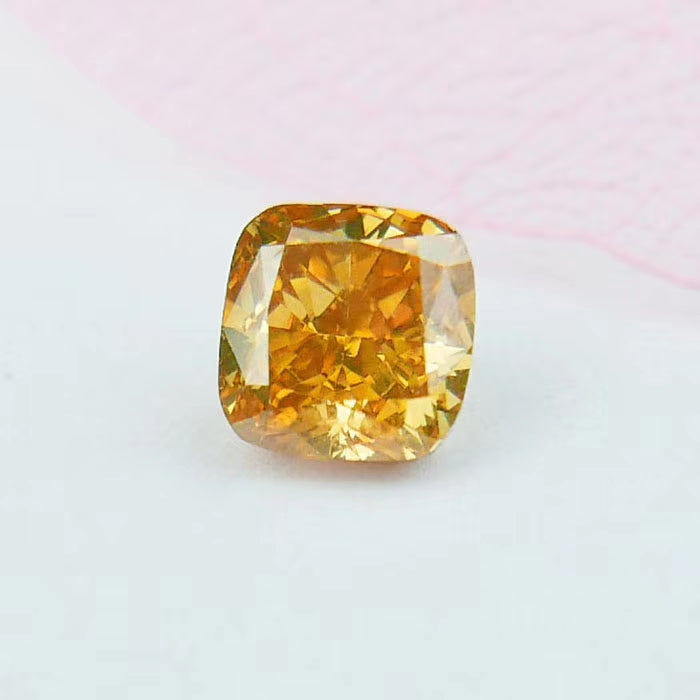 Exquisite Natural Fancy Orange Yellow Diamond - 0.60 Carat Square Cushion Brilliant