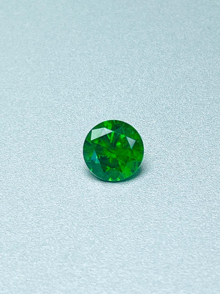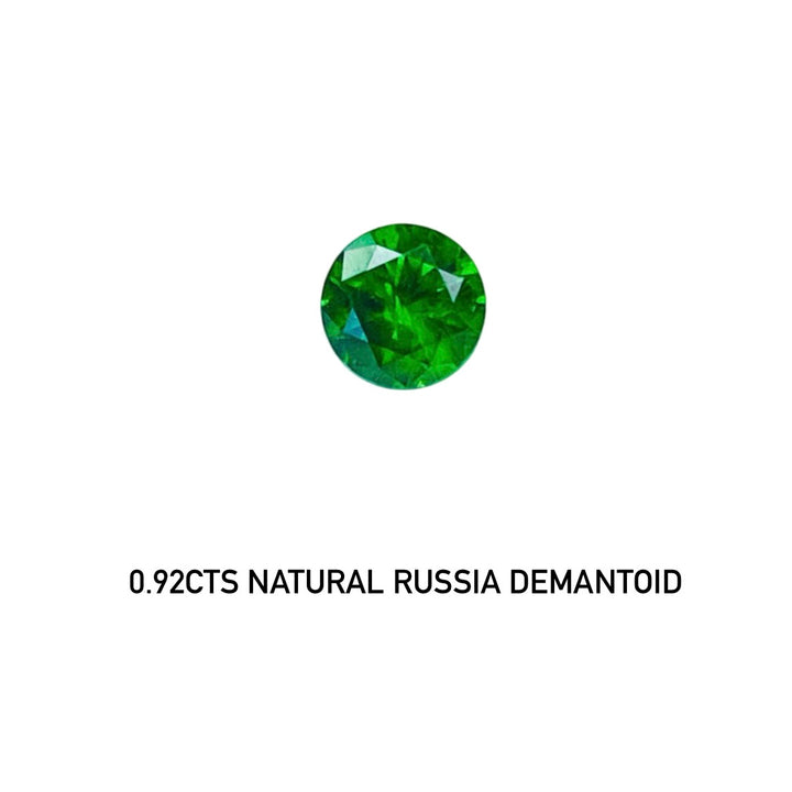 Unlock the timeless elegance of this exquisite demantoid gemstone sourced from Russia's renowned Ural Mountains. Measuring 6.1mm and weighing 0.92 carats, this vivid green gem captivates with its exceptional color and clarity, making it an ideal choice for elevating fine jewelry designs. The demantoid's radiant sparkle and rich hue ensure that it stands out as a centerpiece in any setting, promising to add a touch of luxury and sophistication to your collection. Whether you're a jeweler or a collector, this gem is a must-have for its unique beauty and rarity.