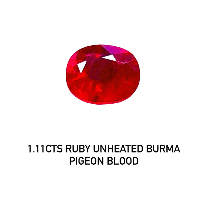 Rare 1.11 Ct Unheated Burmese Ruby - Pigeon Blood Red Gem