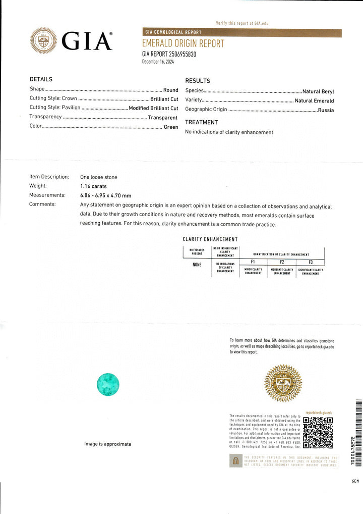 1.16ct GlA Certificate No Oil Emerald Rare Ural Russia origin EMA140