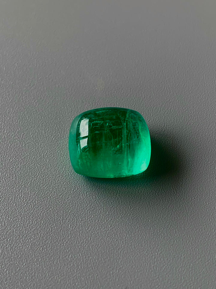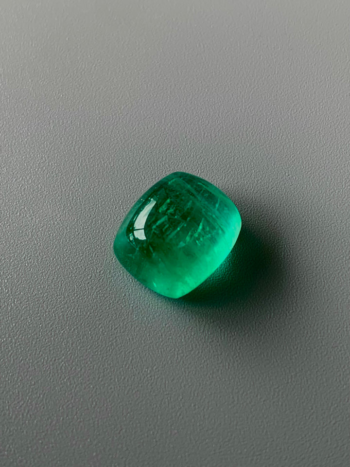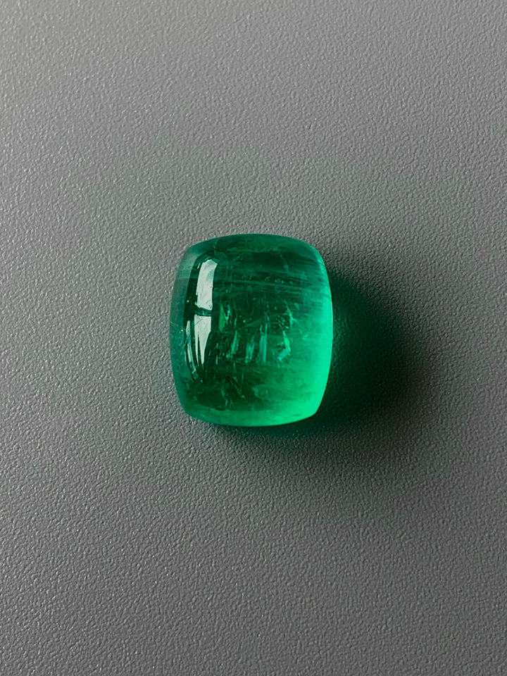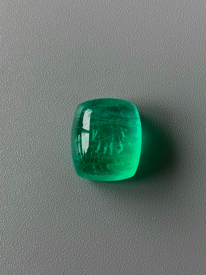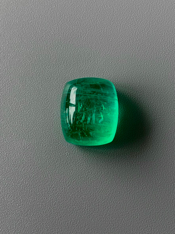 Discover the breathtaking allure of this 10.63-carat natural emerald, a striking member of the beryl family, characterized by its rare neon bottle green color. Originating from Russia, this exceptional gemstone boasts eye-clean clarity and undergoes only minor oil treatment to enhance its mesmerizing appearance. The excellent sugarloaf cabochon cut showcases the emerald's captivating hue and luster, making it an ideal centerpiece for luxury jewelry pieces. This emerald is a testament to both nature's beauty and artisan skill, offering gemstone enthusiasts and collectors a unique opportunity to incorporate a rare and exquisite stone into their collection.