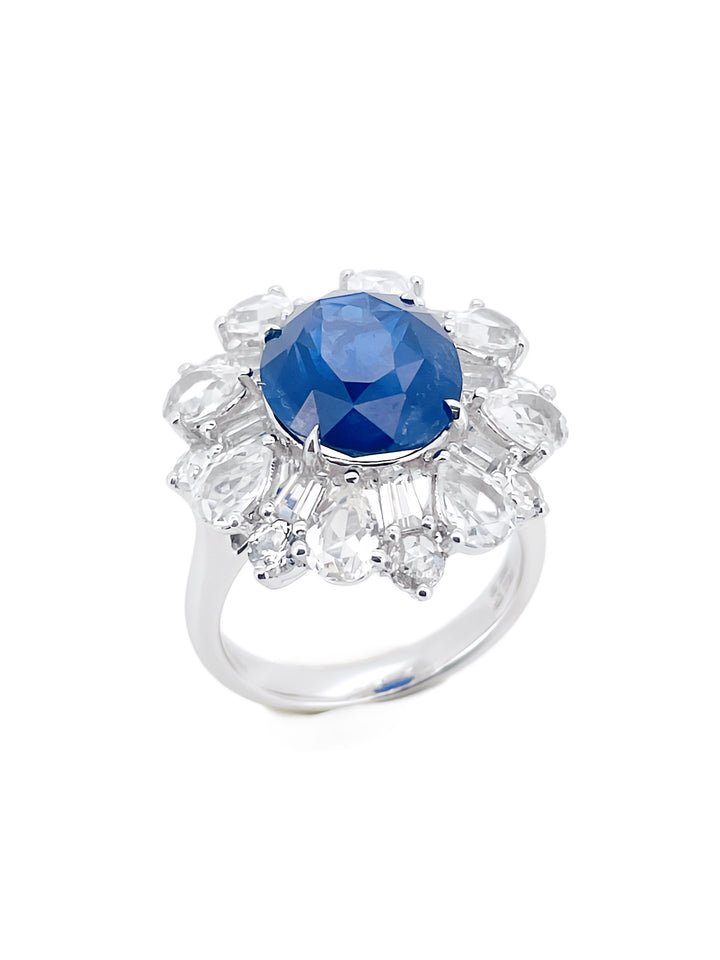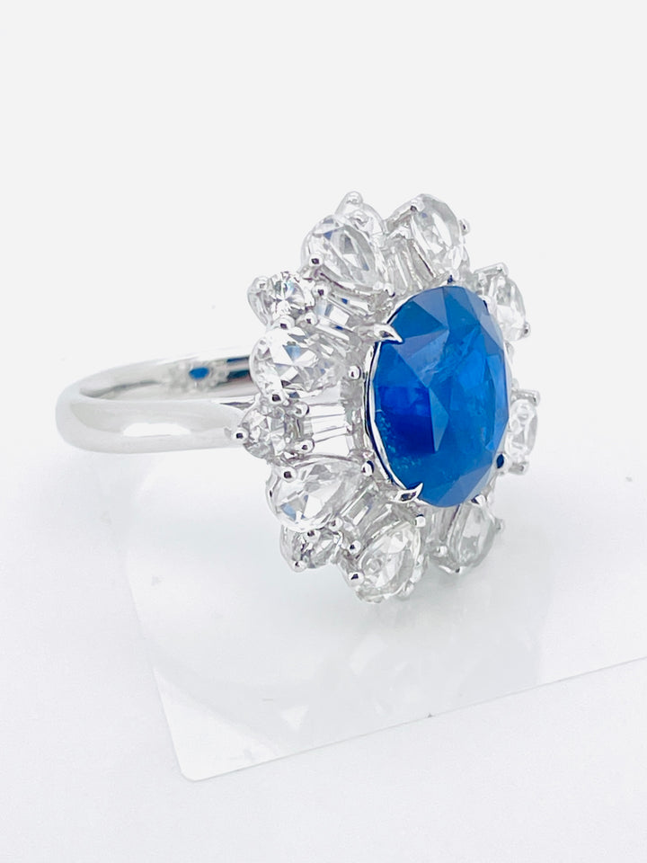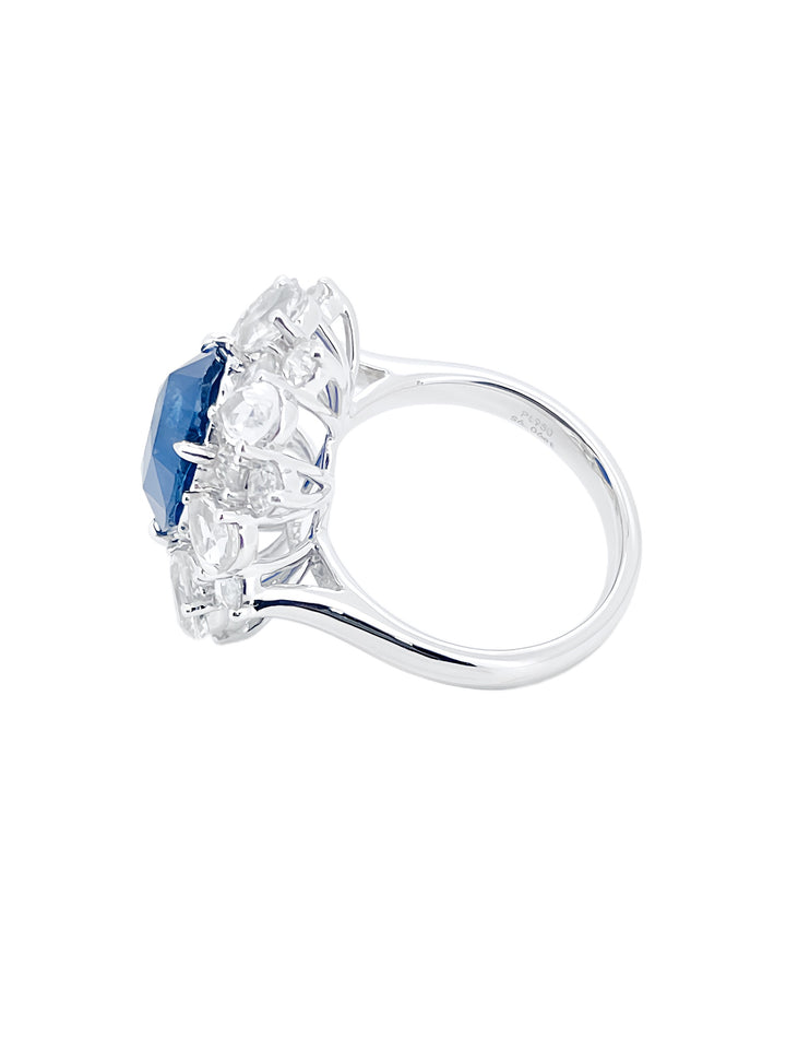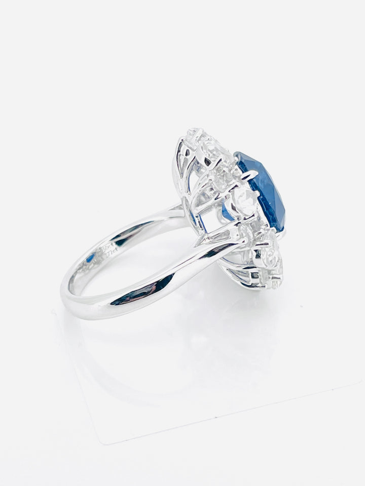 Make a statement with this exquisite natural sapphire ring, artfully crafted in Platinum Gold 900. The centerpiece is a breathtaking 6.06 ct heat-treated sapphire from Sri Lanka, renowned for its intense blue hue. Enhanced by 3.49 ct of vibrant spinels and 0.25 ct of brilliant diamonds, this piece radiates sophistication. Weighing a total of 12.69 grams, the ring is an ideal fit at size 14#HK/USA7#. Perfect for those seeking a blend of elegance and craftsmanship, this ring is a true celebration of fine jewellery artistry.