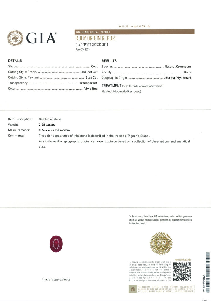 Exceptional 2.06 Ct Pigeon Blood Ruby – GIA Certified from Burma