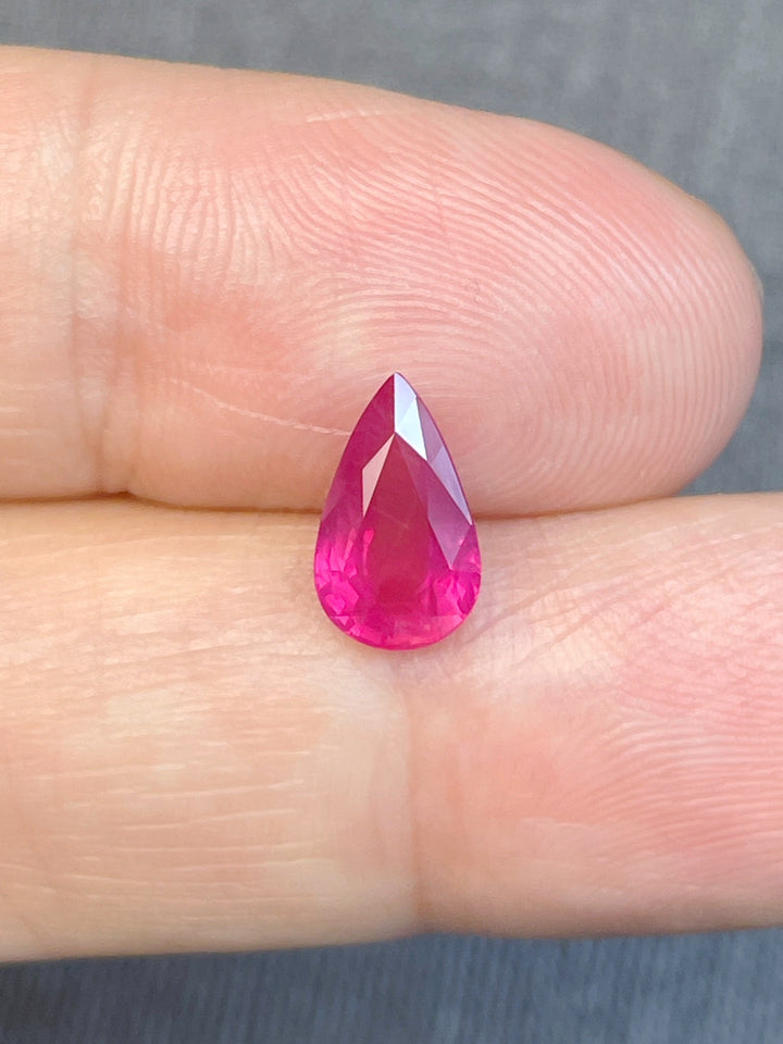 Certified Mozambique Pinkish Red Ruby - 2.12Ct Pear Cut by AIGS