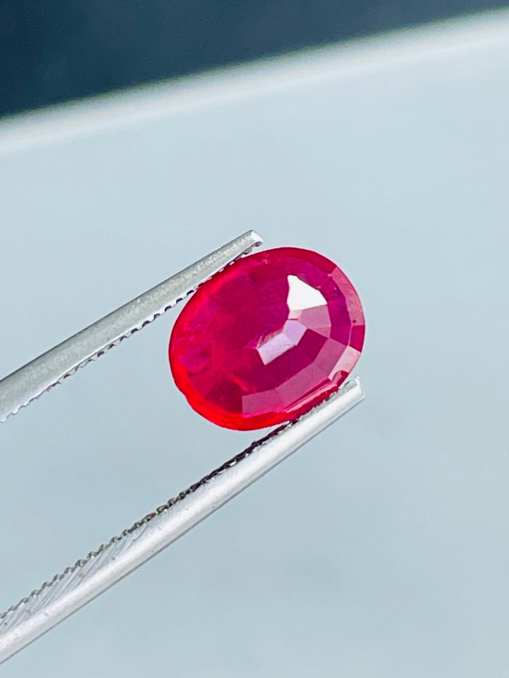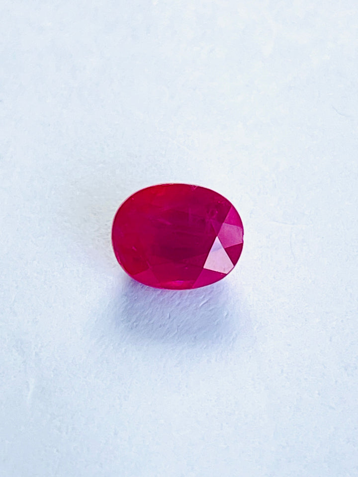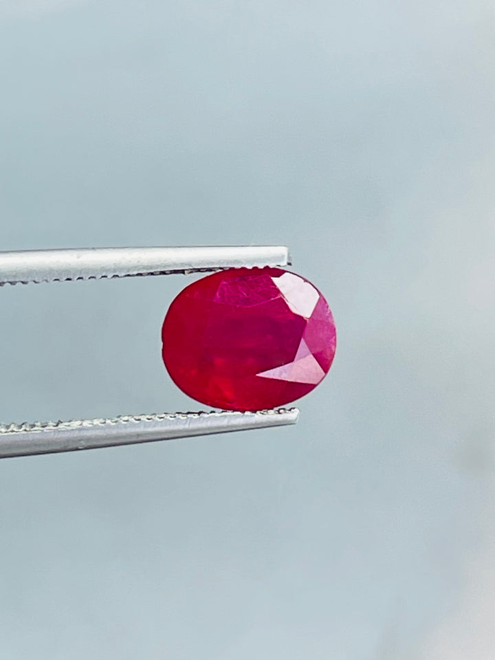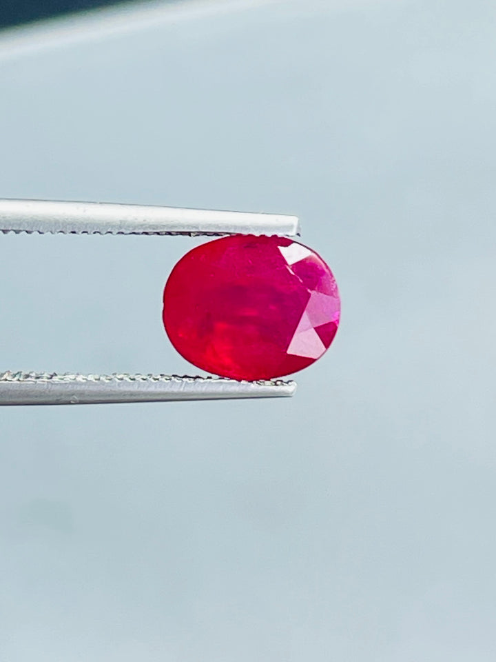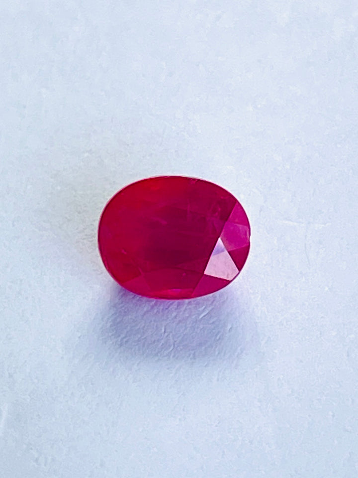 This natural ruby features a beautifully executed oval cut that enhances its rich pinkish-red hue and maximizes its brilliance, making it an exquisite centerpiece for any jewelry design.