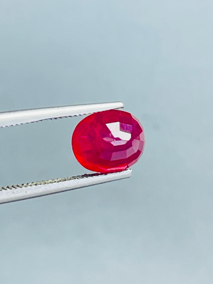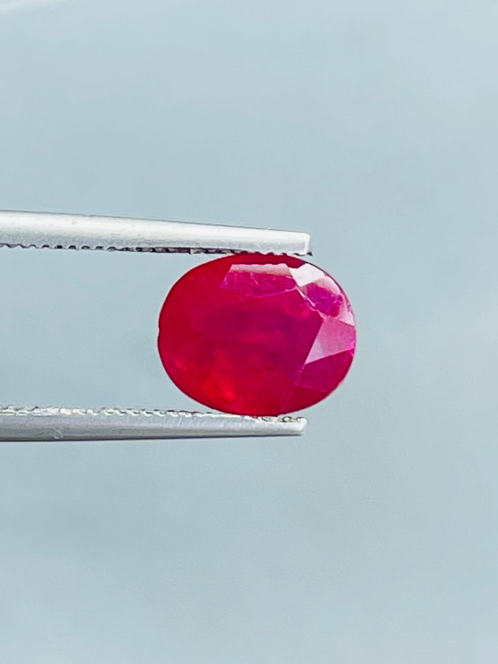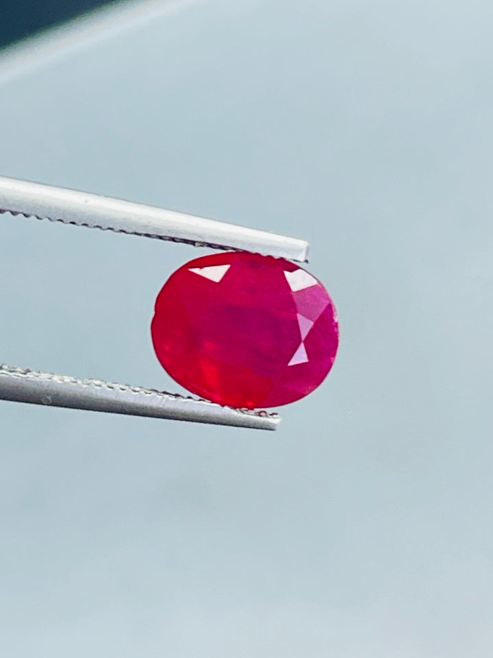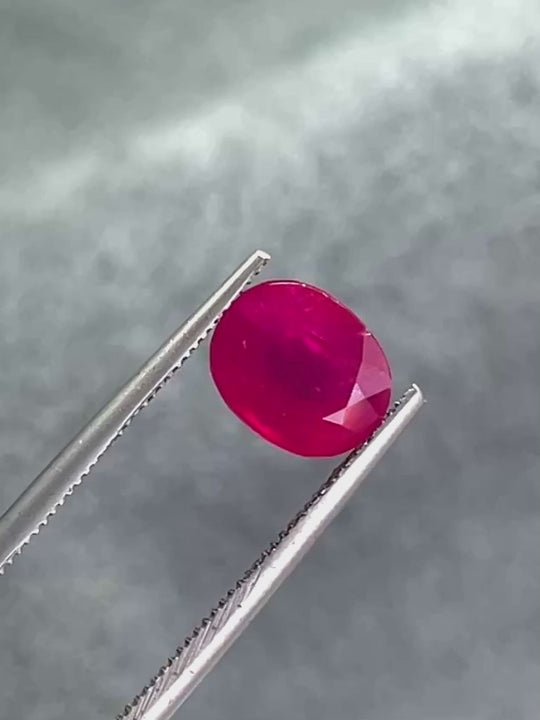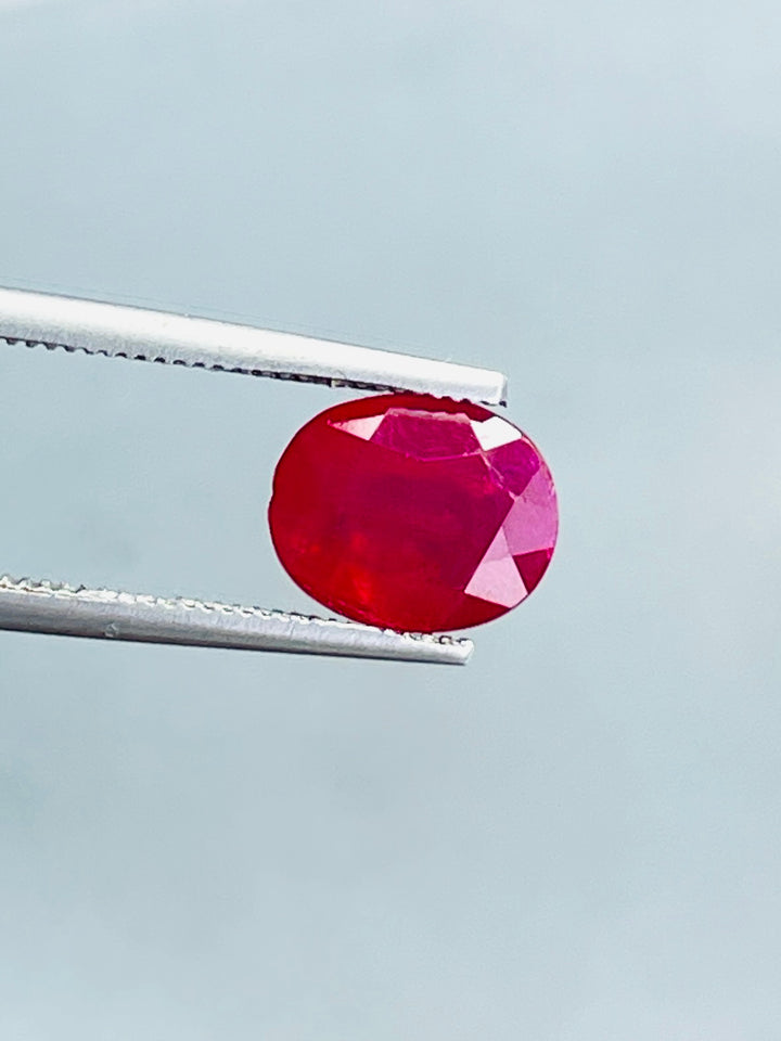 This natural ruby features a beautifully executed oval cut that enhances its rich pinkish-red hue and maximizes its brilliance, making it an exquisite centerpiece for any jewelry design.