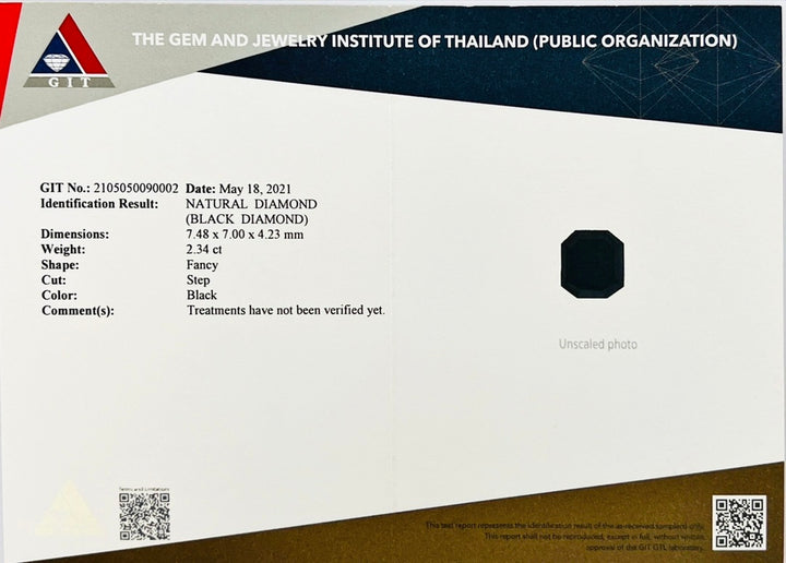 Unveil the opulence of this 2.34ct natural black diamond, a stunning gemstone with eye clean clarity and a rich black color. Its very good cut allows for maximum brilliance, making it an exquisite choice for luxury jewelry. Originating from Africa and devoid of any heat treatment, this diamond ensures authenticity and superior quality. Whether crafted into an iconic ring or an elegant pendant, this diamond’s unique allure adds sophistication and character to any collection.
