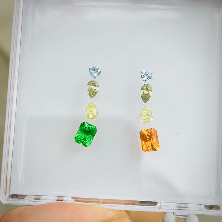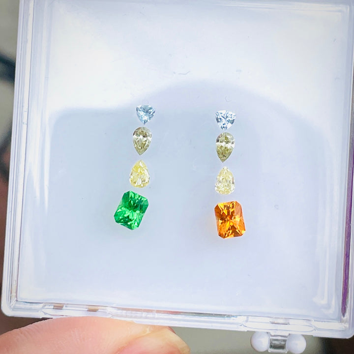 Exquisite 2.47ct Gemstone Set - Natural Tsavorite, Spessartite, Fancy Diamonds, Unheated Sapphire