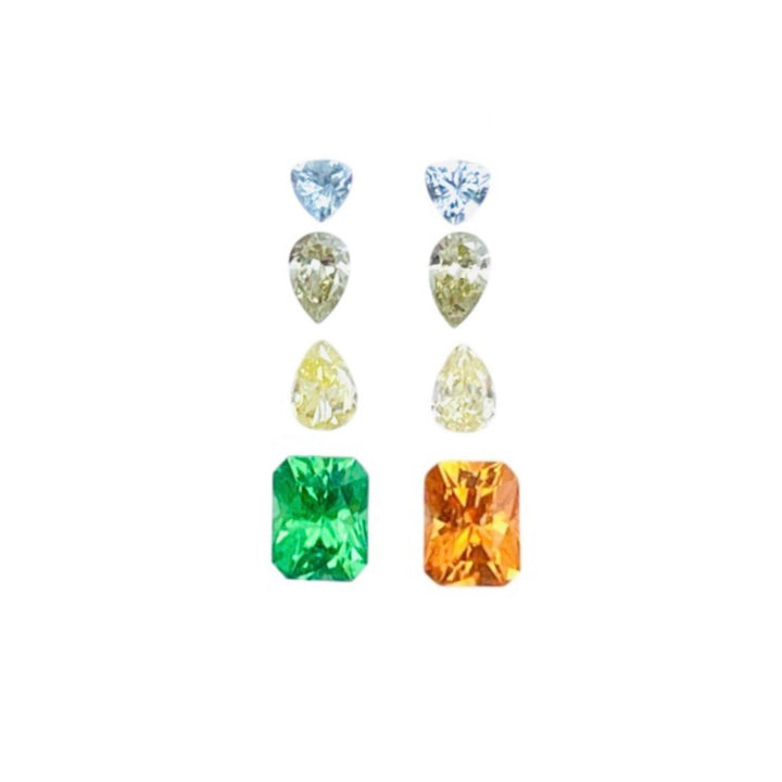 Dive into the sophistication of our 2.47ct gemstone collection, offering a luxurious blend of Natural Tsavorite, Spessartite, Fancy Color Diamonds, and Unheated Sapphire. Comprising eight exquisitely cut pieces, this array showcases vibrant colors — a lush green Tsavorite, fiery Spessartite, elegant fancy diamonds with a VS clarity rating, and distinctive fancy-colored sapphire. Each gem in this set is eye-clean and masterfully cut to perfection without any treatments. Ideal for jewelry enthusiasts, luxury designers, and collectors seeking unparalleled quality.