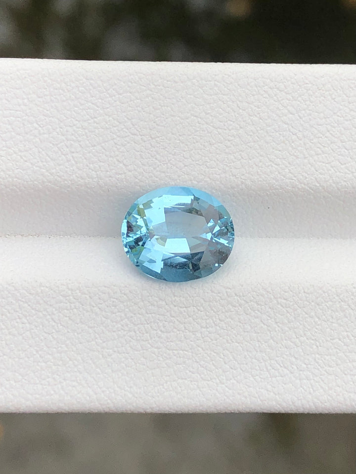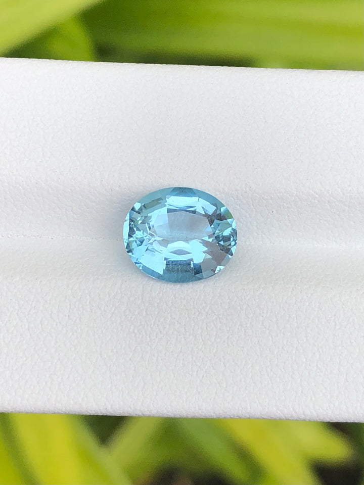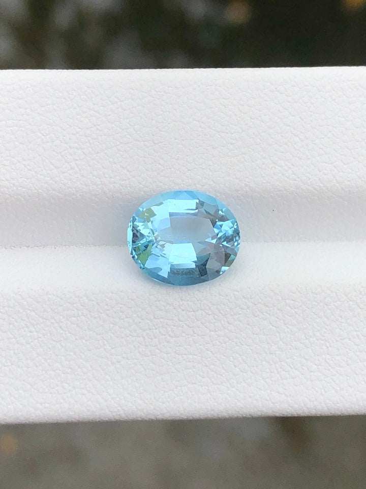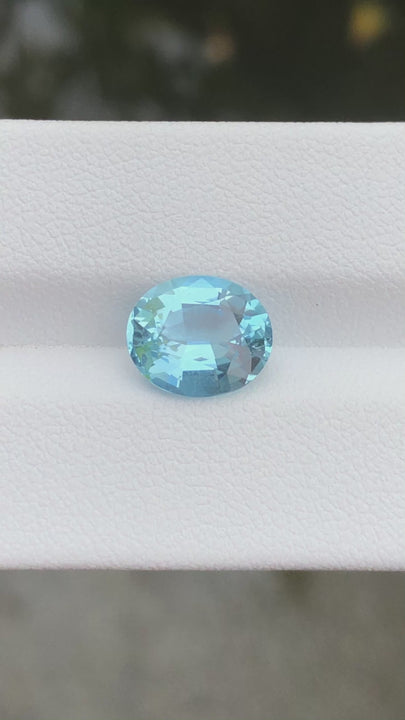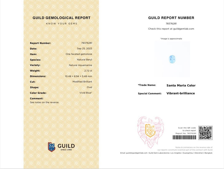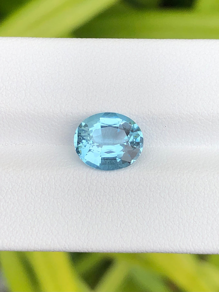 Experience the captivating beauty of the GUILD Certified 2.72ct Santa Maria Aquamarine, a gemstone renowned for its stunning Santa Maria blue color and impeccable eye-clean clarity. Originating from the prominent gemstone mines of Brazil, this natural beryl is characterized by its elegant oval shape and excellent cutting, which enhances its luminosity and depth. The Santa Maria Aquamarine is prized for its distinct and vivid blue shade, making it a desirable choice for those who value luxury and exclusivity. Ideal for creating bespoke jewelry pieces or enhancing your prestigious gemstone collection, this aquamarine embodies sophistication and timeless beauty.
