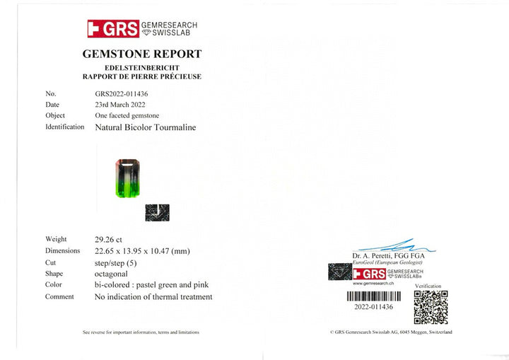 GRS Certificate Afghanistan Tourmaline Bi Color Melon