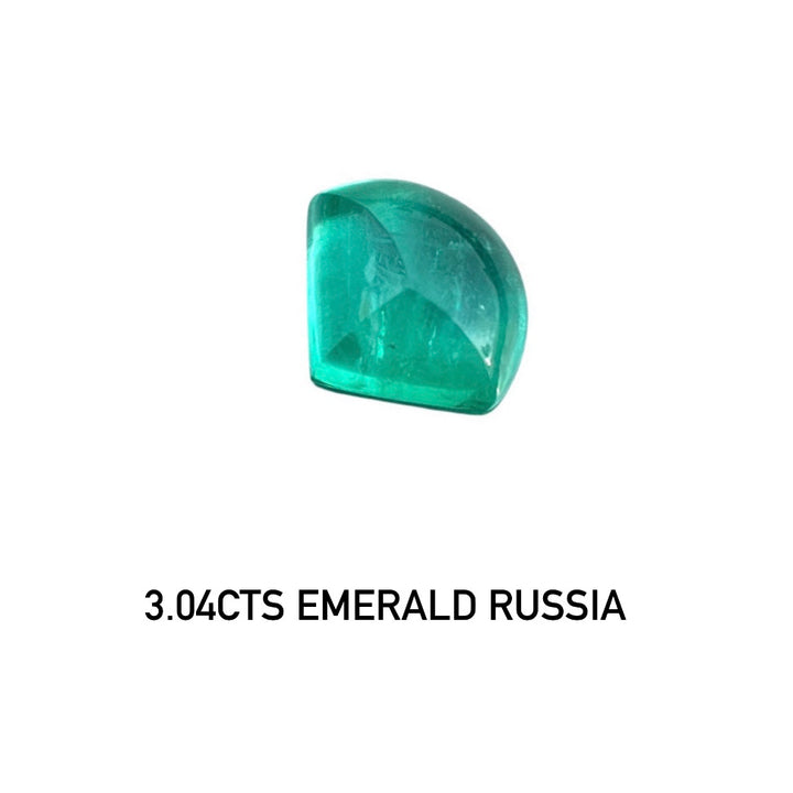 Enhance your collection with this 3.04ct Natural Emerald, distinctive in its neon green brilliance and rare Russian origin. Expertly cut into a unique half moon cabochon, this gemstone offers a smooth and polished surface, reflecting light in a captivating way. With minimal oil treatment, its natural and vivid color is preserved, making it a stunning choice for bespoke jewelry designs or as a standout piece in any gemstone collection. This emerald embodies both rarity and elegant charm, perfect for those who value exceptional and unique gemstones.