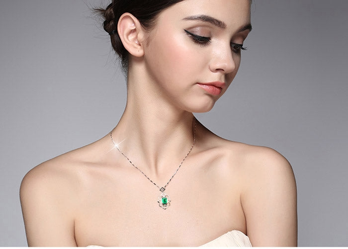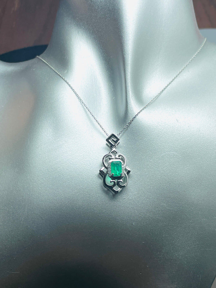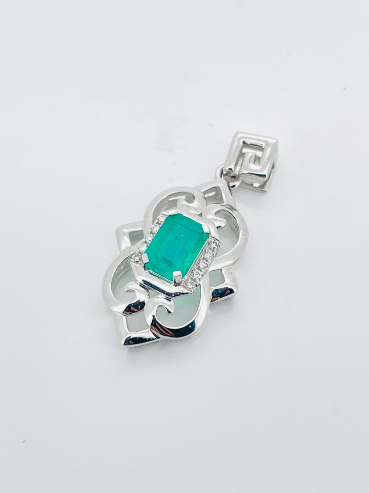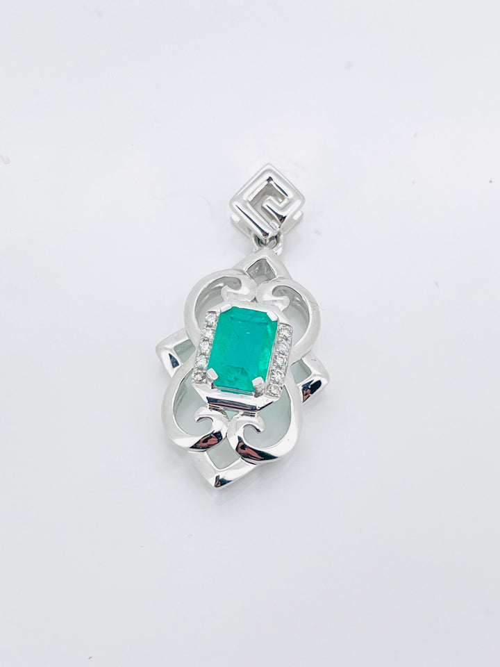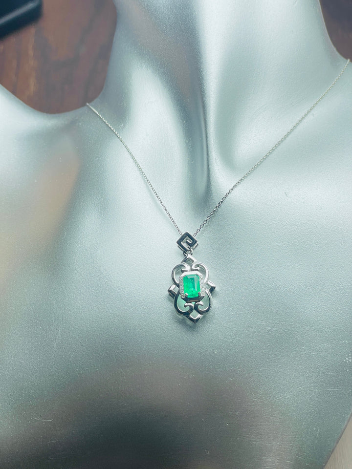 Exquisite 0.74ct Colombian Emerald & Diamond Pendant in 18k White Gold