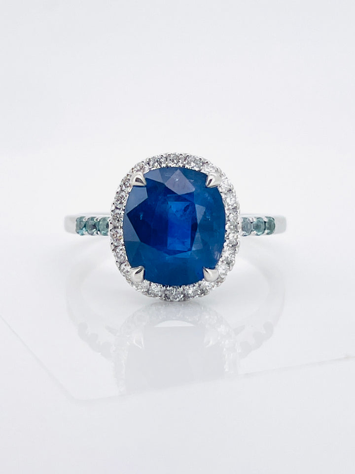 Exquisite 14K White Gold Sapphire & Diamond Ring - 3.61 Carat
