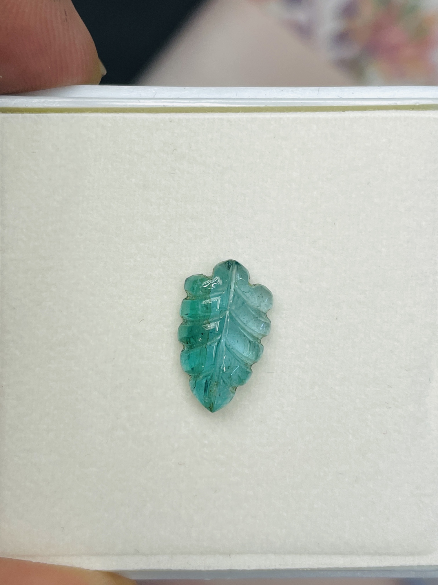 3.7Ct Natural emrald leaf carving gemstone loose stone green intense zambia WB Gem  EMA58