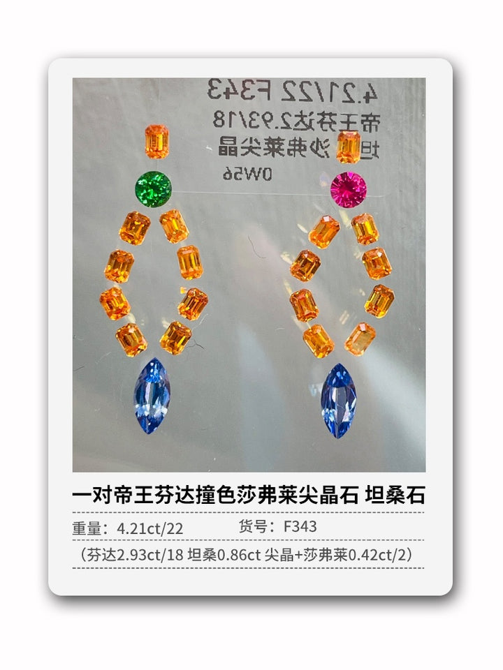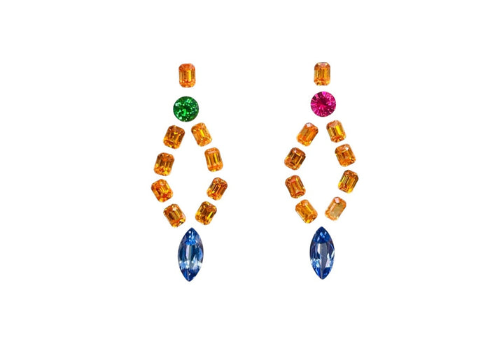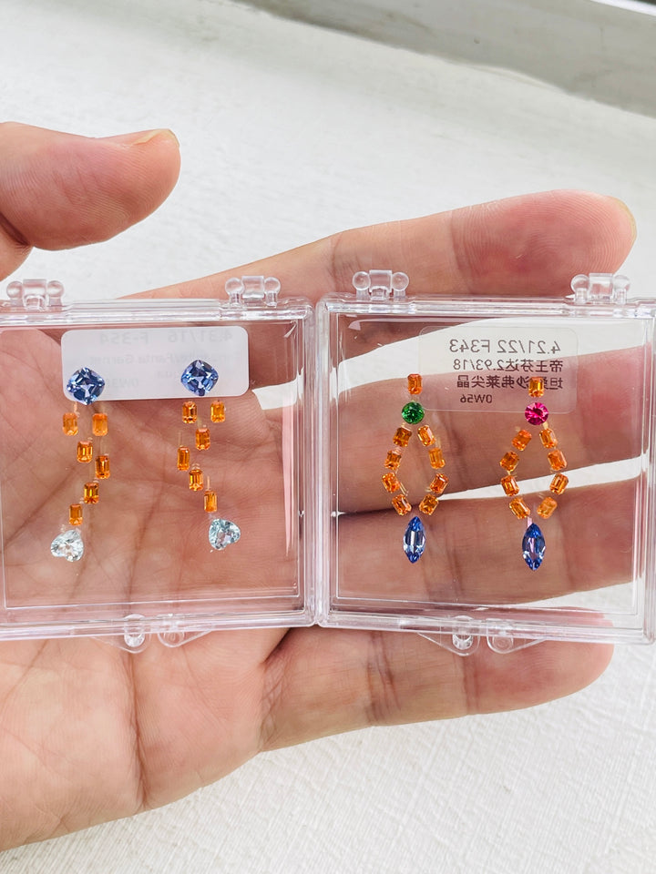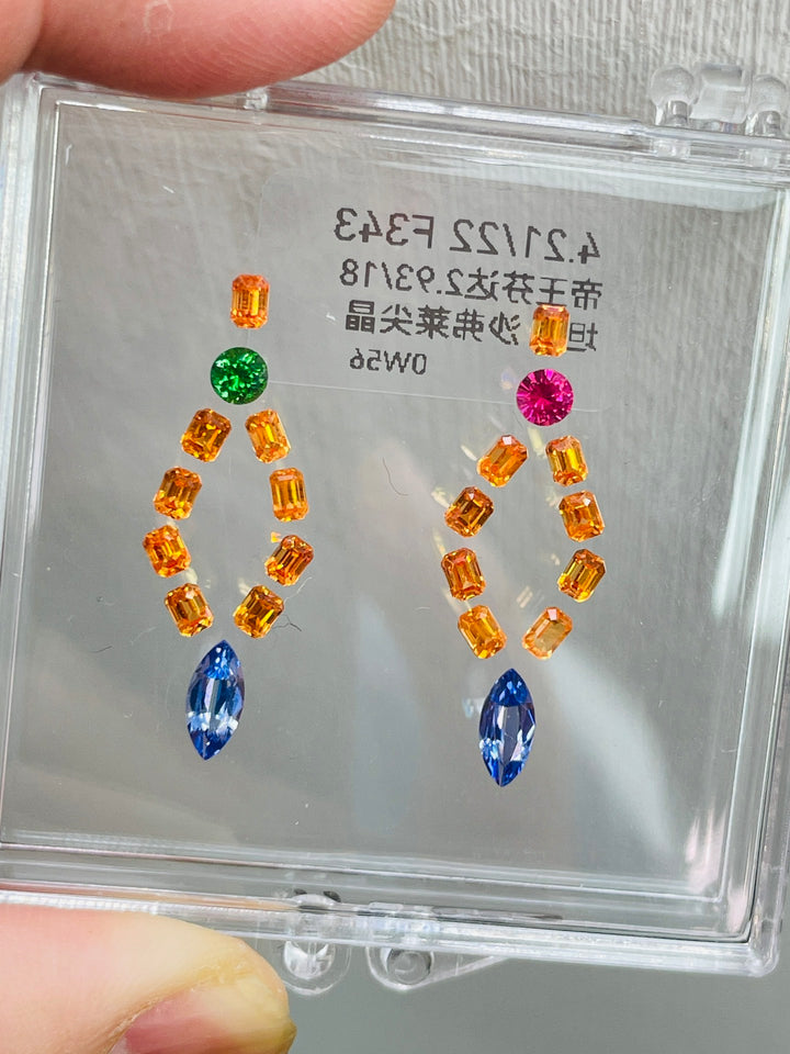 4.21ct Multi color imperial garnet Spessatite spinel Jedi tsavorite tanzanite earring luxury style F343