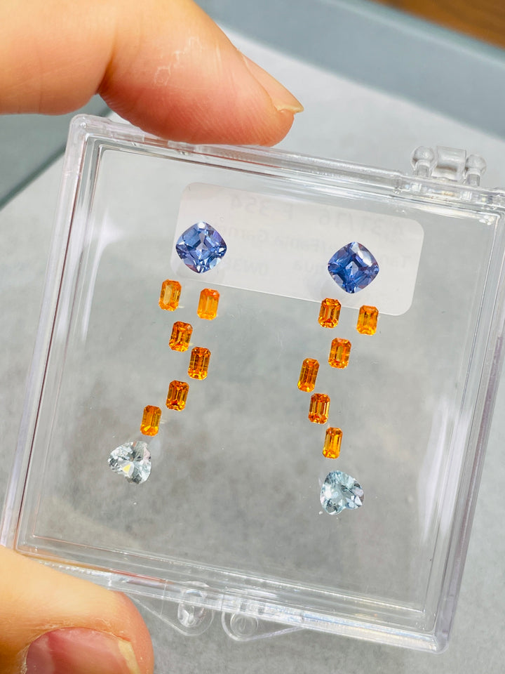 Uncover the beauty of our premium gemstone collection featuring Natural Spessartite Garnet, Tanzanite, and Natural Aquamarine. This curated 4.31/16 carat ensemble presents a dazzling spectrum of colors - vibrant orange Spessartite, deep purple Tanzanite, and serene blue Aquamarine. Each stone is eye-clean and enhances its innate beauty through excellent cutting and a commitment to natural, unheated authenticity. Ideal for jewelry artisans and collectors, these gems offer limitless creative possibilities.