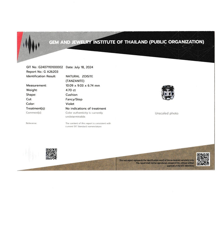 4.70Ct GIT Certified Precision Cutting Zoisite UnheatTanzanite blue Color Gemstone TZA155
