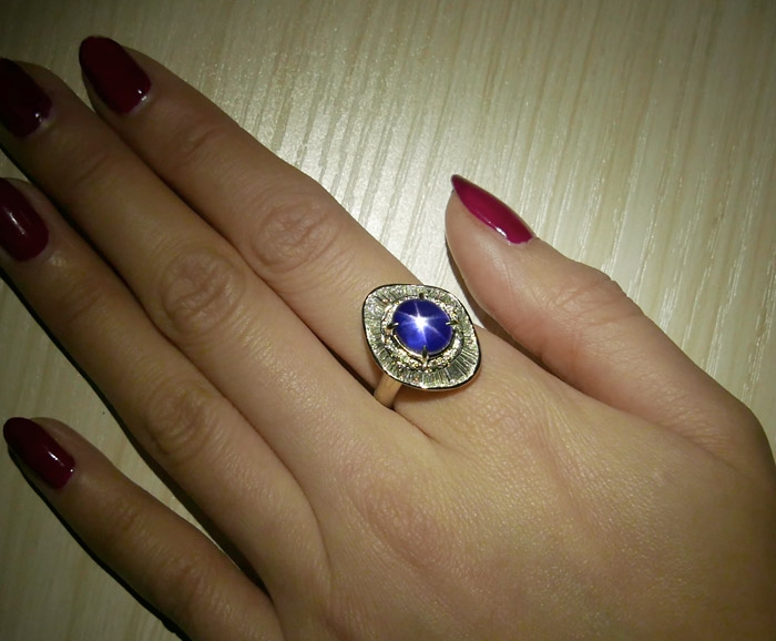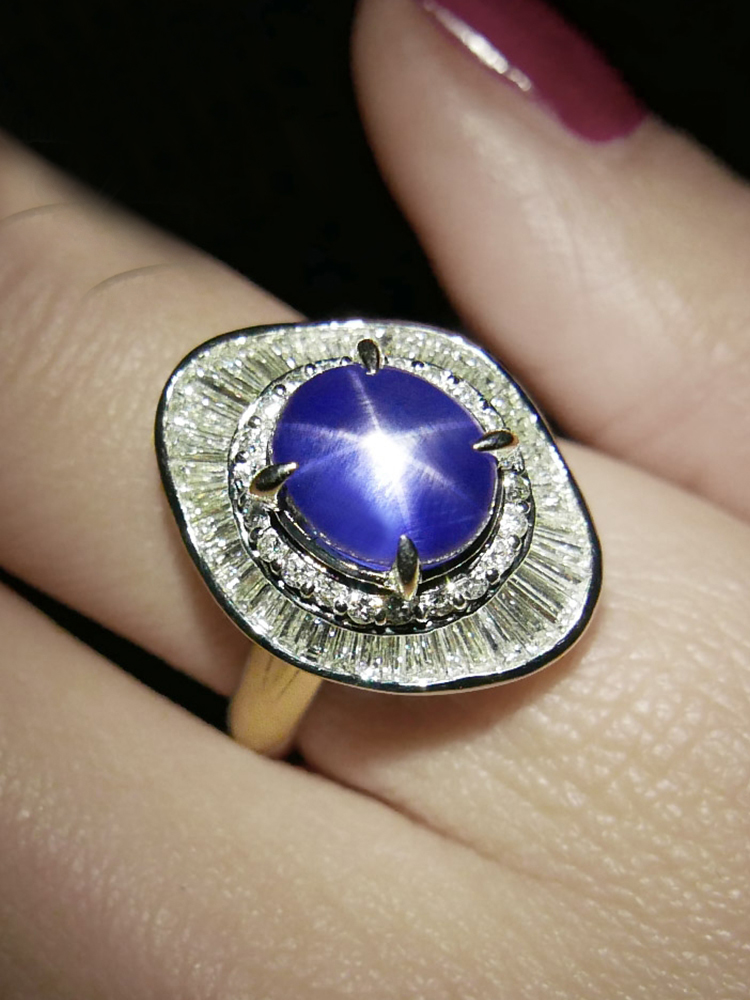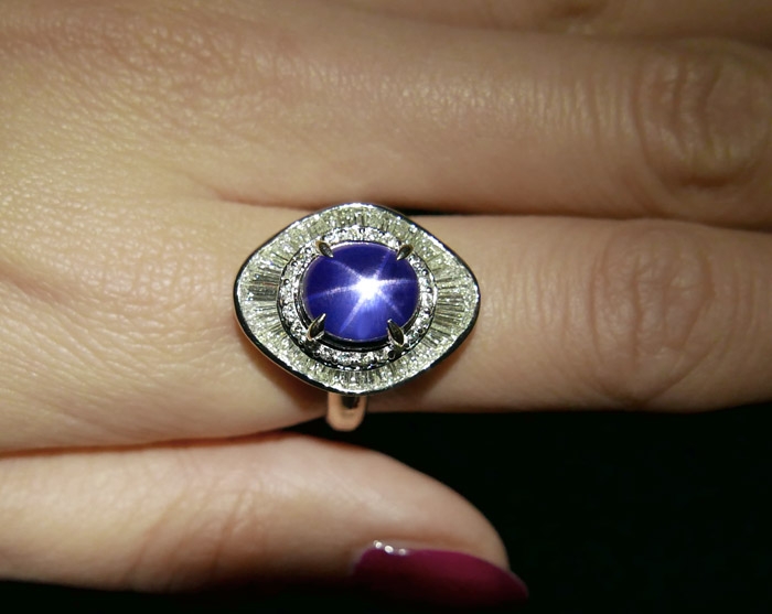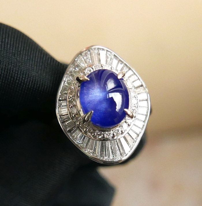 certificate 5.32ct Natural star sapphire ring PT900 gold jewelry 12.64gram site stone diamond WB Gem AE13