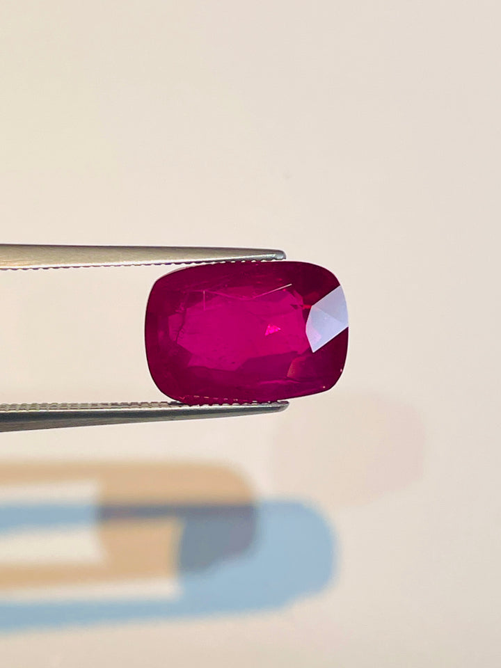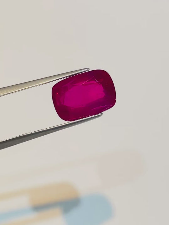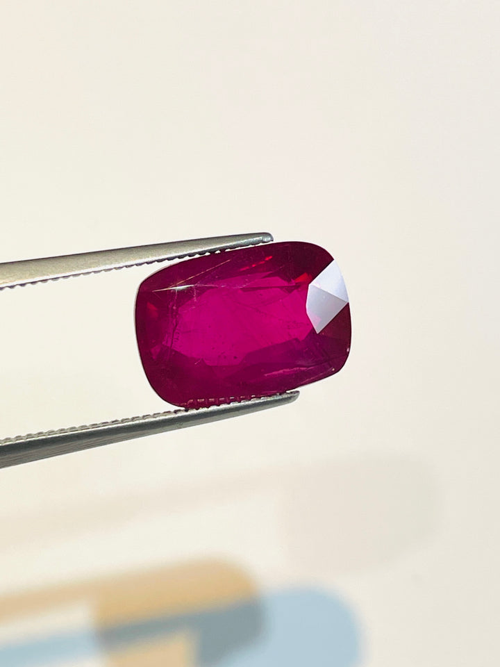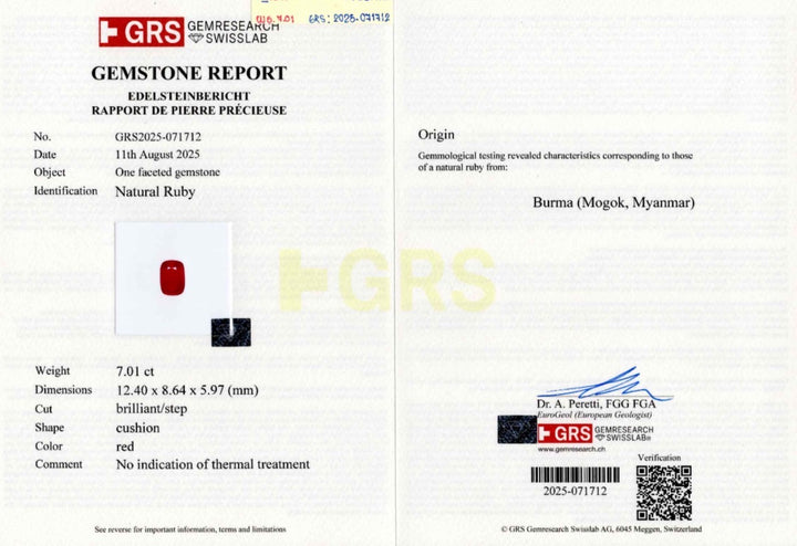 Experience the allure of this extraordinary 7.01-carat natural ruby hailing from the famed gemstone region of Mogok, Myanmar (Burma). Boasting a captivating cushion shape with a brilliant/step cut, this ruby is GRS certified, ensuring its authenticity and remarkable quality. What makes this gemstone truly special is its untreated nature; showcasing its natural beauty without any thermal alterations. The luscious red color embodies passion and elegance, making it a perfect choice for high-end jewelry and a prized addition to any exclusive gemstone collection. Elevate your prestige and sophistication with this unparalleled Burmese ruby today.
