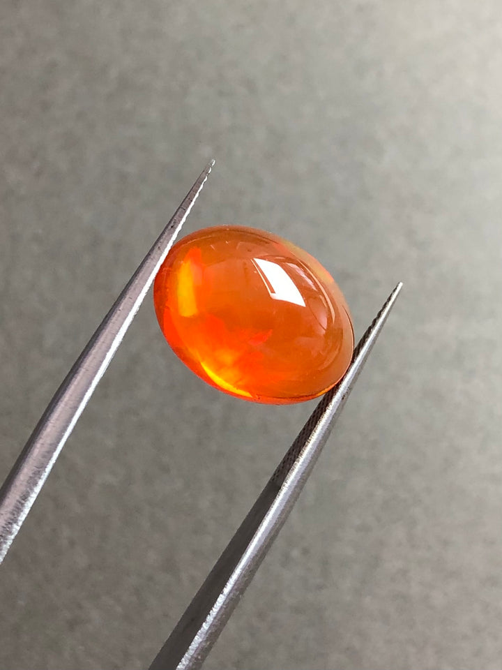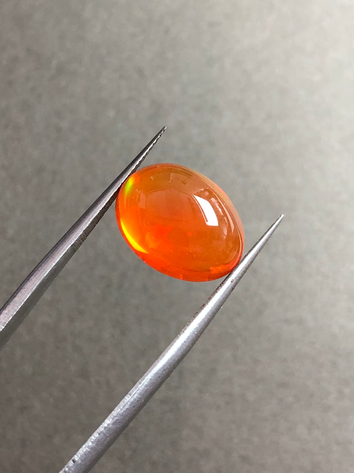 7.66ct Natural Fire Opal mexico gemstone loose stone cabochon orange with multi play color WB Gem OPA09