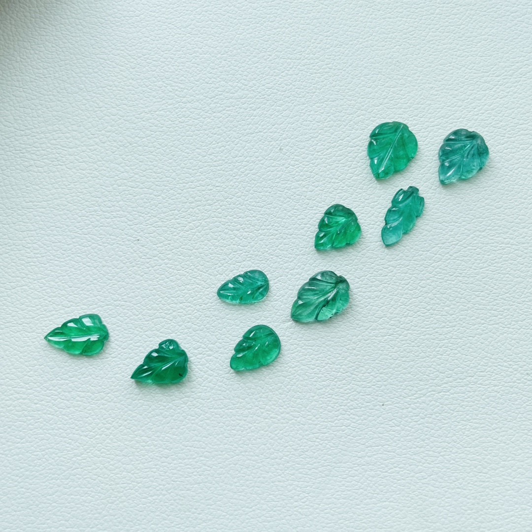 Natural Leaf Emrald Zambia Gemstone 6.49 Carat 9 pieces for one set jewellry design WB Gems EMB08