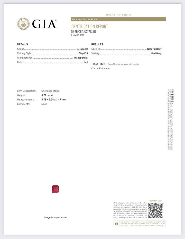 GIA Red emrald red beryl rare size 0.77carat cleanest collection