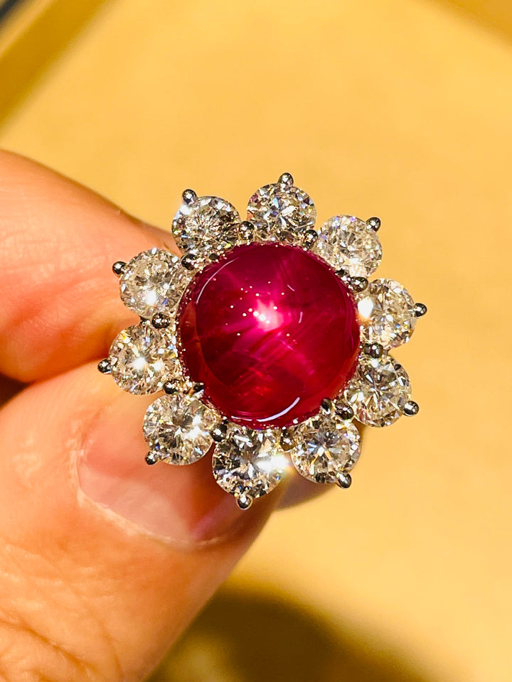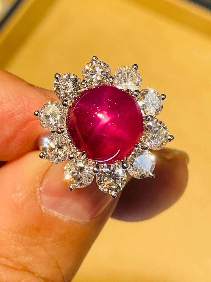 Whether you're a collector seeking rare, high-value gems or an investor looking for precious assets, this star ruby in platinum and gold offers magnificent beauty and significant appreciation potential. It’s perfect for anyone wishing to make a statement with exceptional jewelry.