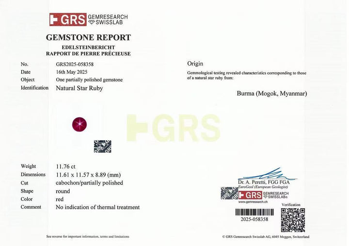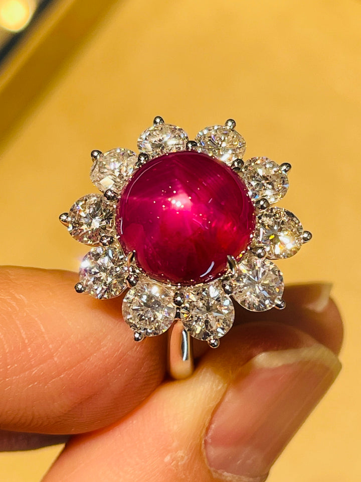 Natural Star Ruby 11ct – Unheated Burma Mogok, GRS Certified in Platinum Gold Ring