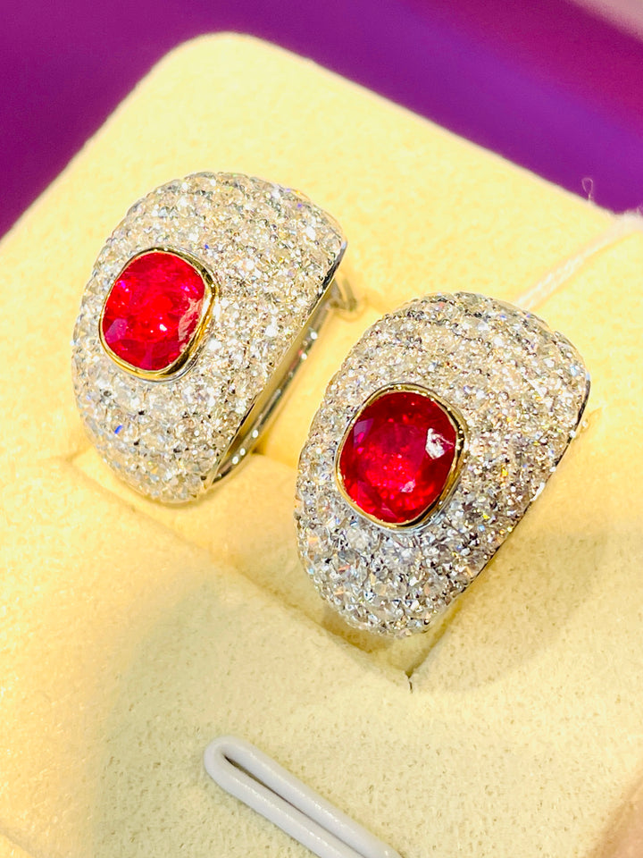 Elevate your elegance with these exclusive pigeon blood ruby earrings. Add these luxurious gems to your collection today.