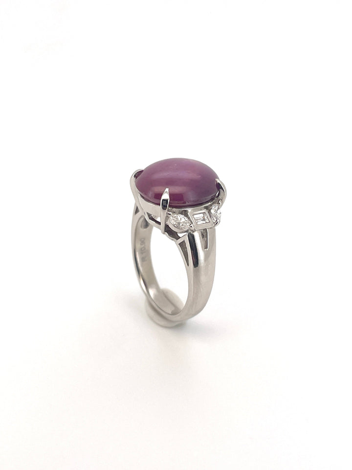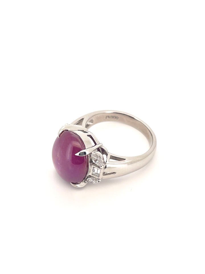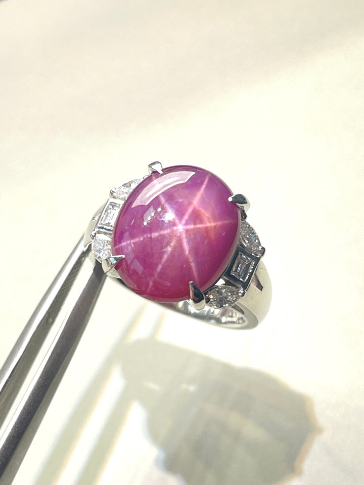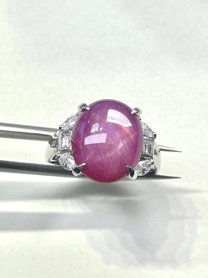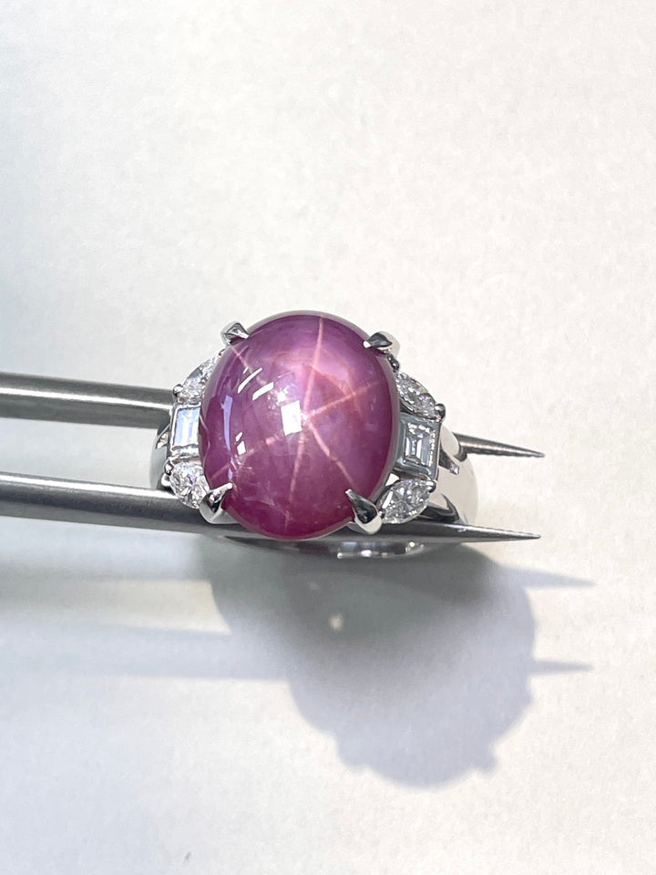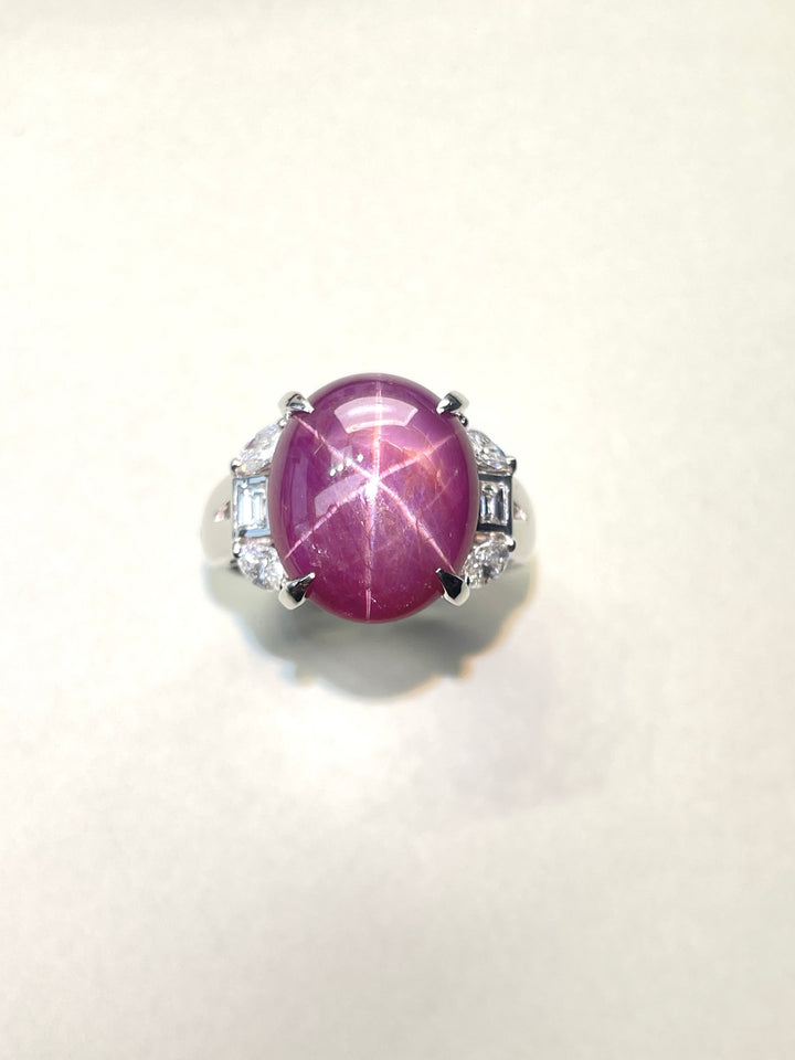 Elevate your jewelry collection with this breathtaking PT900 gold ring, centered around a striking 10.80-carat natural star ruby. Hailing from Burma, this gem showcases a captivating pinkish-red hue with clear six-star rays, creating a unique visual delight. Unheated and ICA certified, this gemstone maintains its natural allure, complemented by the brilliance of 0.50-carat natural white diamonds in the setting. Crafted with meticulous attention to detail, this ring combines elegance and sophistication, ensuring it stands as a centerpiece in any fine jewelry collection. Available in size HK 14/USA 7, make a lasting impression with this magnificent piece