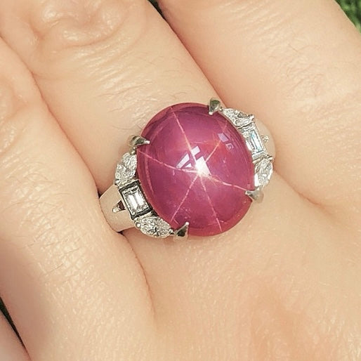Luxurious PT900 Gold Ring with 10.80ct Natural Star Ruby & Diamonds - ICA Certified