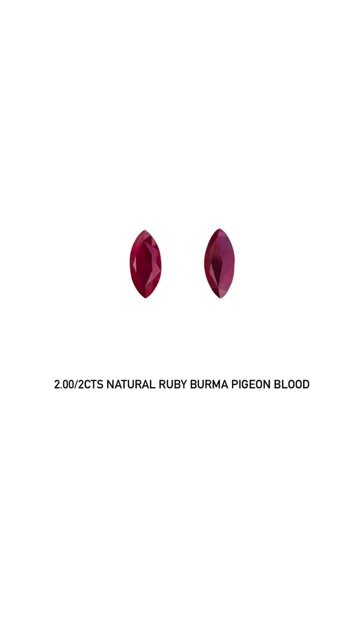 Certified 2.00ct Burma Natural Ruby - Pigeon Blood, Eye Clean Marquise