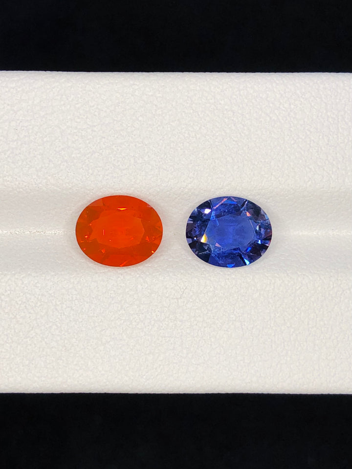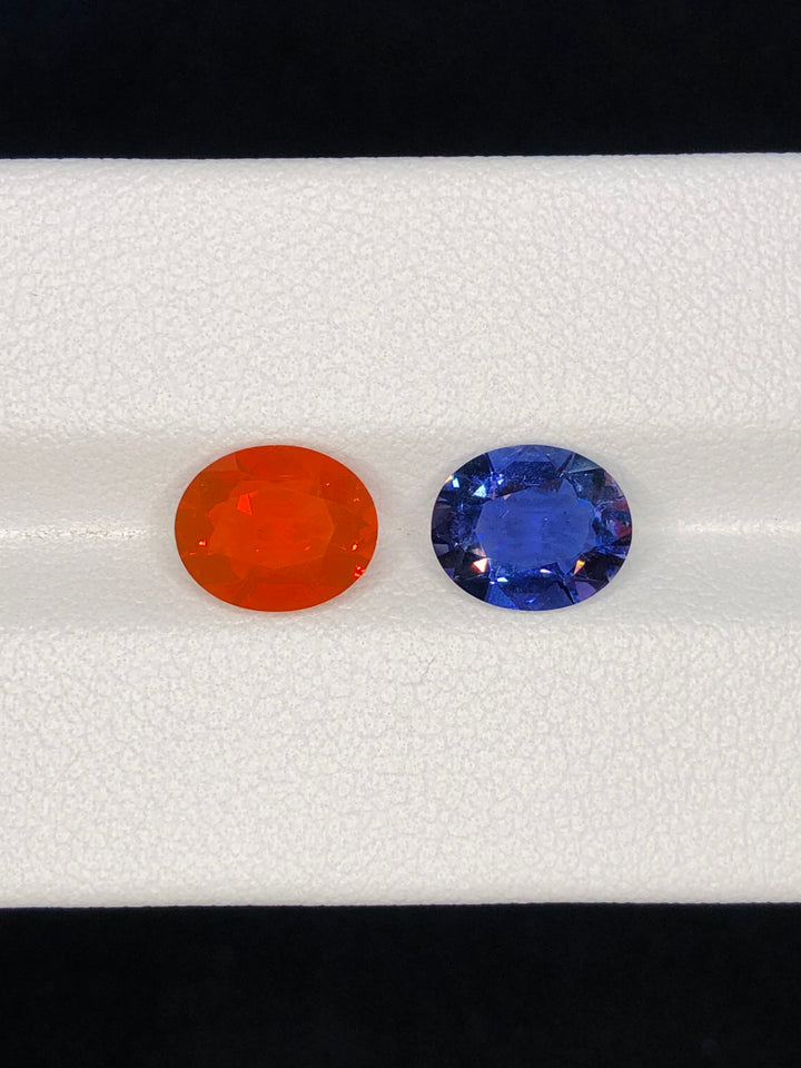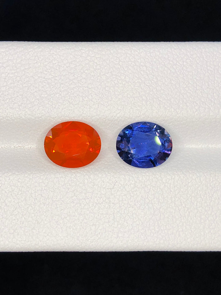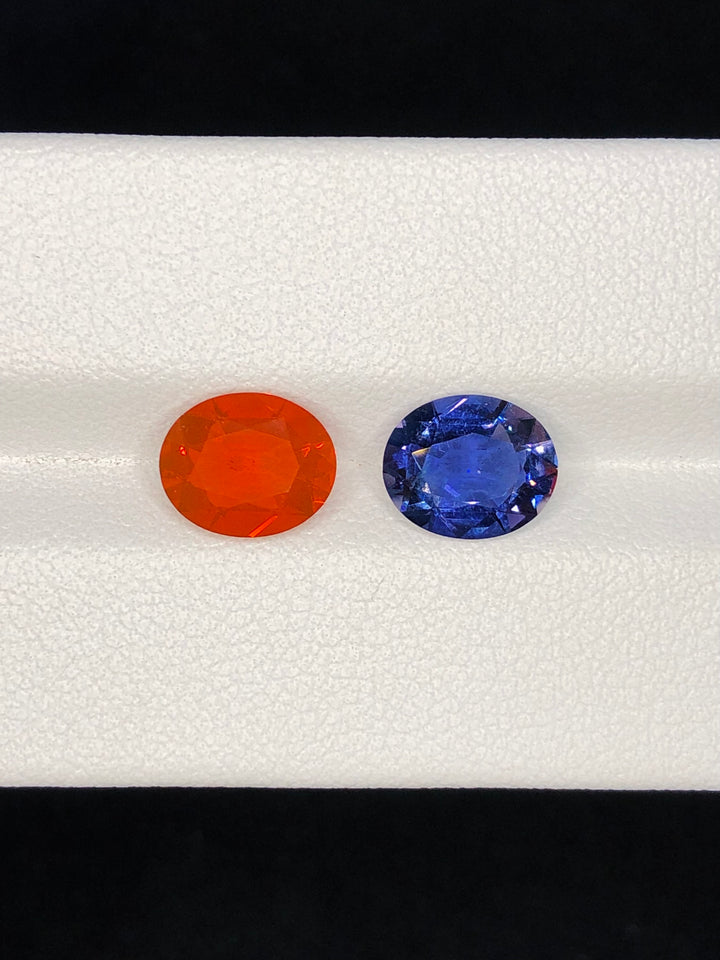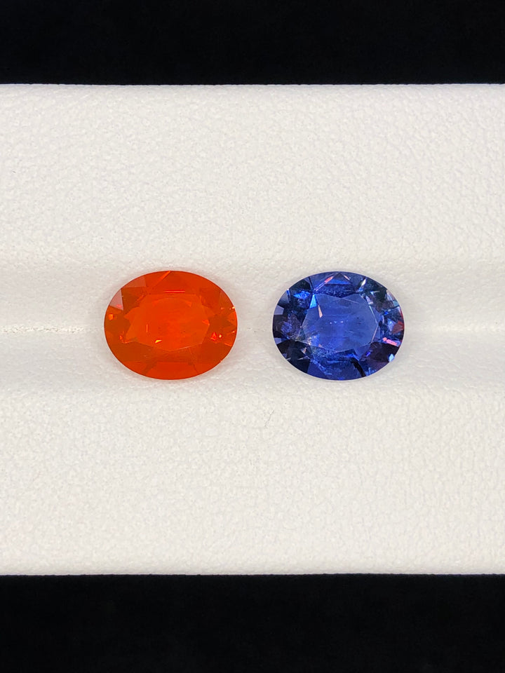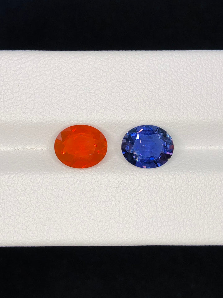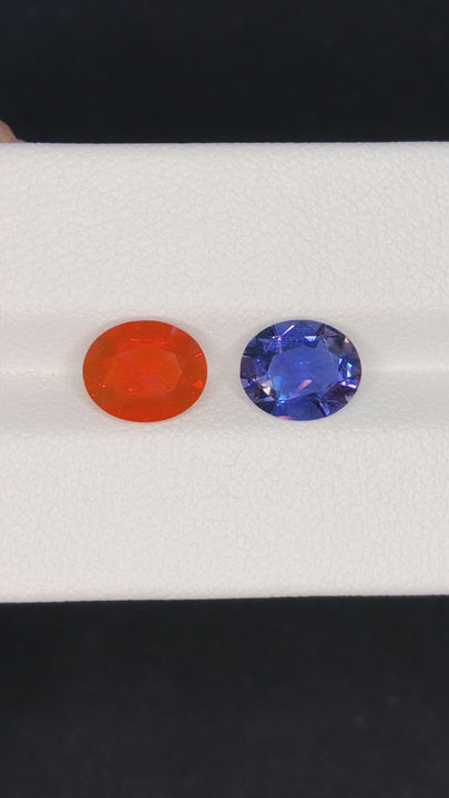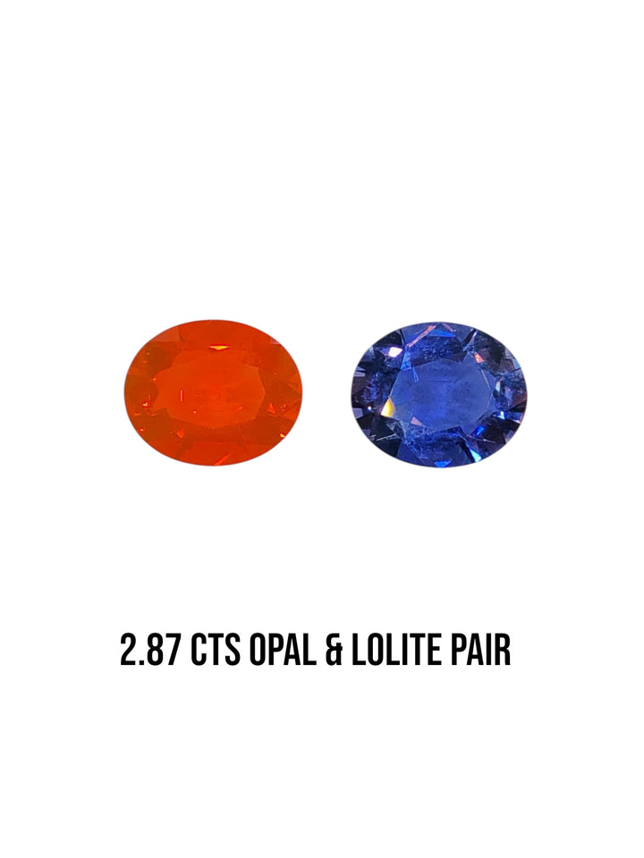 Enhance your collection with this captivating 2.87 Ct gemstone pair, comprising natural opal and iolite. Each gem boasts a remarkable eye-clean clarity and excellent cut, showcasing vivid red and blue hues that captivate onlookers. Sourced from Mexico, this unheated pair highlights the natural beauty of these gemstones, making them ideal for collectors and designers seeking unique, high-quality materials for custom jewelry creations.