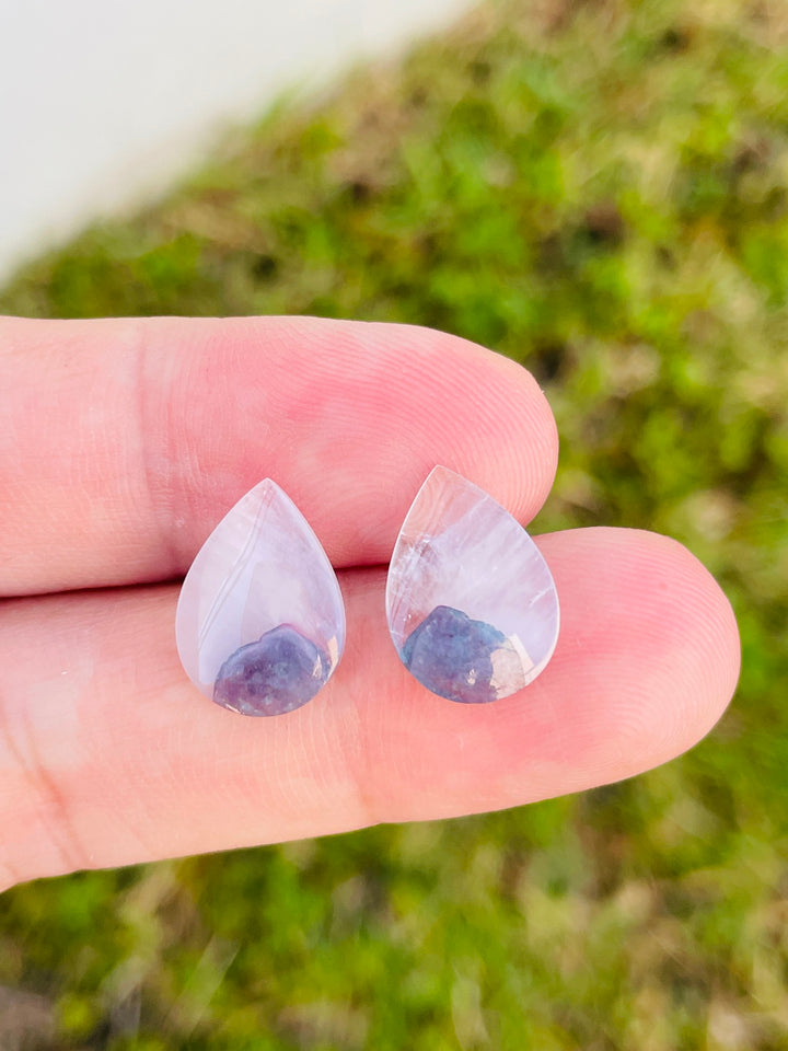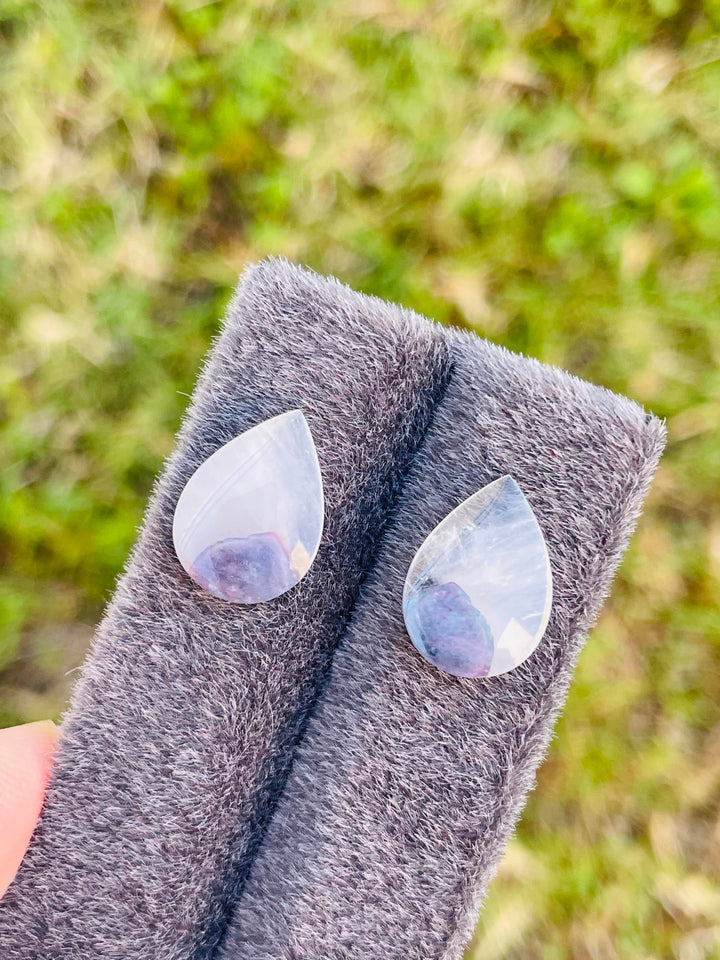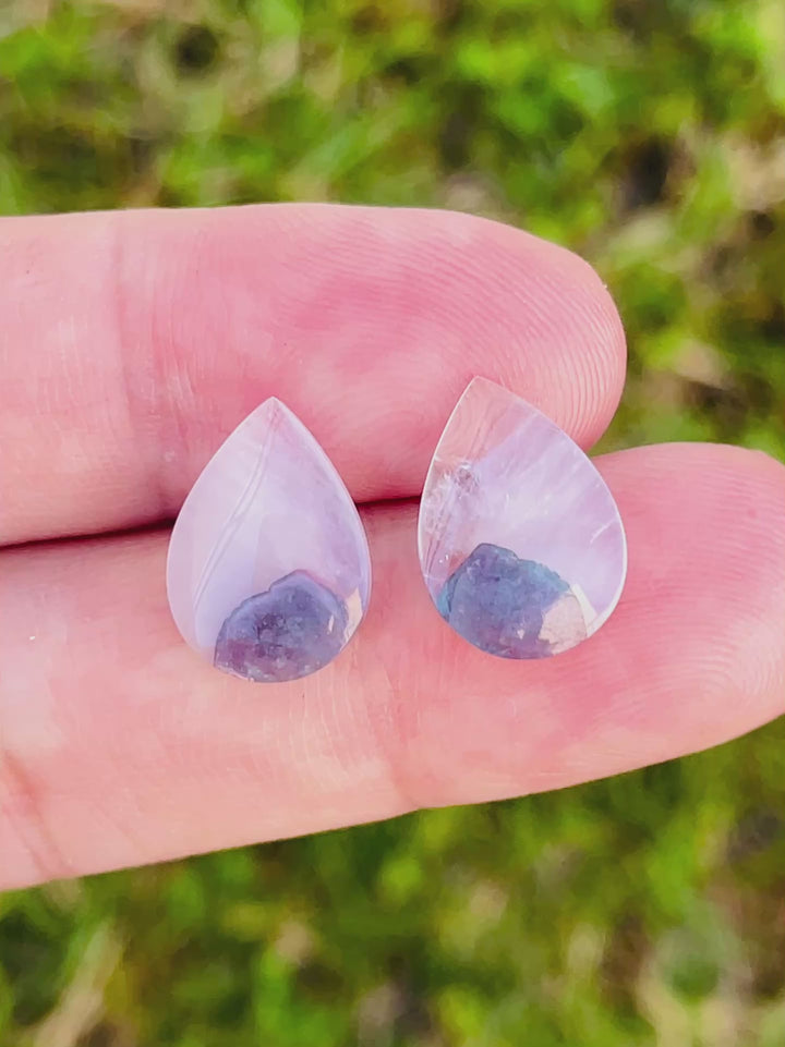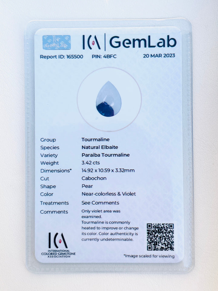 Introducing a pair of exquisite Paraiba Tourmalines, expertly certified by IGA, showcasing the pristine beauty and luminosity that define this rare variety. With a combined weight of 6.91 carats, these gemstones display an alluring balance of near-colorless and violet hues, highlighting their natural elegance and rarity. The cabochon cut enhances their pear shape, emphasizing their smooth surface and internal glow. Sourced from esteemed locations and left unheated to maintain their original charm, these tourmalines are an ideal choice for sophisticated jewelry pieces or as a distinguished addition to any gemstone collection.