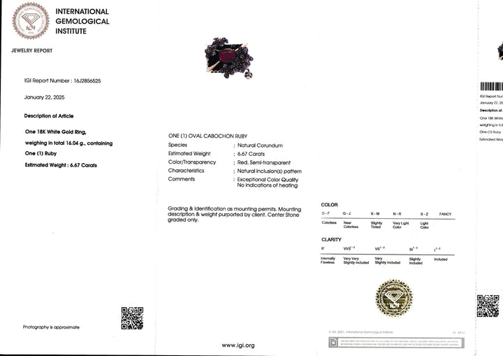 Indulge in the allure of this exceptional luxury ring, showcasing a 6.67 ct unheated Burma ruby as its exquisite centerpiece. Crafted in 18K gold, this one-of-a-kind design is enriched with vibrant floral motifs of purple sapphires and yellow diamonds. The ring's unique architectural band, adorned with brilliant-cut diamonds, black enamel, and red coral details, adds sophistication and depth to this mesmerizing piece. Certified by GRS, AIGS, and IGI, this ring is a testament to the finest artistry and craftsmanship.