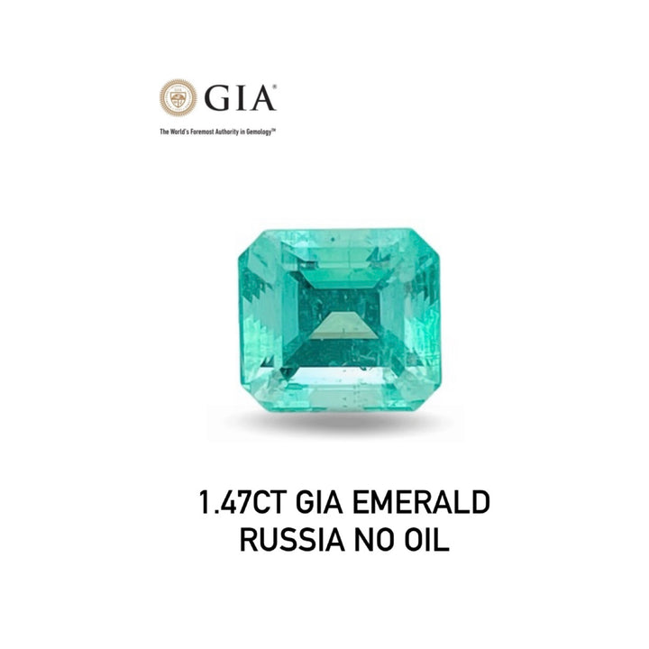 Indulge in the radiant beauty of this 1.47-carat natural emerald, featuring a captivating green color that signifies luxury and sophistication. Originating from the prestigious mines of Russia, this emerald is truly eye clean, providing clarity and an unobstructed view of its innate splendor.
