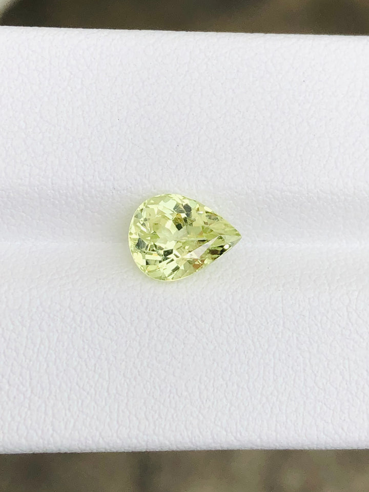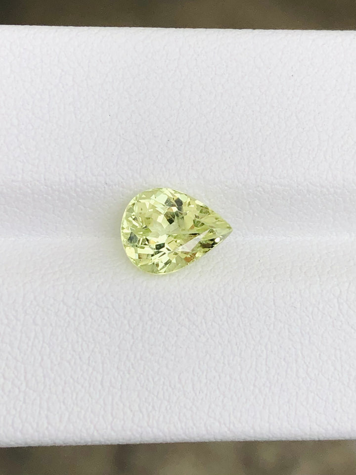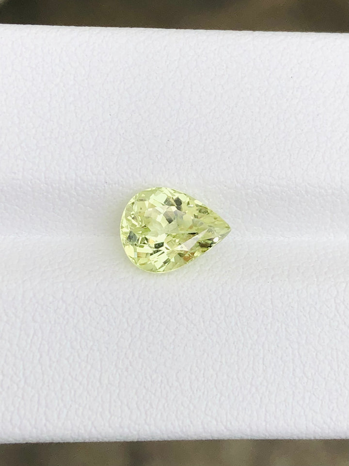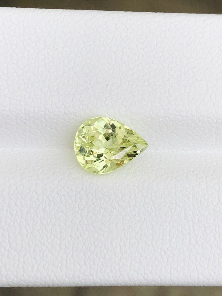 Capture the essence of luxury with this exquisite 1.85-carat natural Chrysoberyl, celebrated for its vivid yellow color and elegant pear shape. Mined from the rich lands of Africa, this gemstone is renowned for its exceptional qualities, including an excellent cut that enhances its natural brilliance and eye-clean clarity, ensuring maximum sparkle. Untreated to maintain its authentic allure, this Chrysoberyl is ideal for crafting one-of-a-kind jewelry pieces or adding a superb specimen to your gemstone collection. Its unique shape and vibrant color make it a standout choice for those seeking elegance and sophistication.