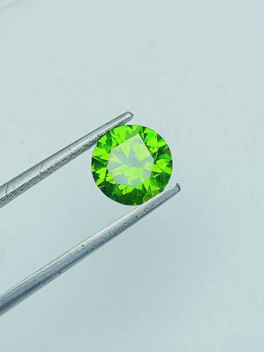Discover the allure of the Natural Demantoid Garnet, a 2.10-carat masterpiece renowned for its vivid green hue and exceptional clarity. This round-shaped gemstone, sourced from Russia, boasts an excellent cut that maximizes its brilliance and fire. As an eye-clean garnet, it promises unblemished beauty and impeccable quality.