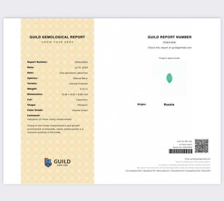 4.72ct GUILD Certificate Natural Russia Emerald cabochon Neon Color eye clean Gemstone