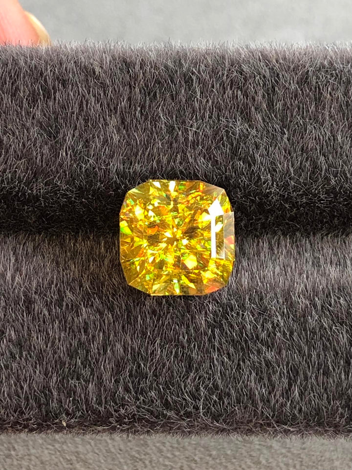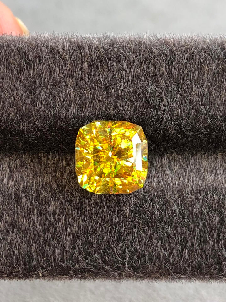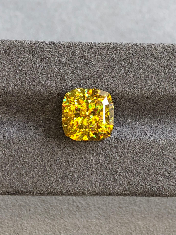 Delve into the captivating beauty of this 5.12-carat natural Sphene, exhibiting a stunning canary color with remarkable multi-color play. This gemstone hails from Madagascar, a region acclaimed for producing high-quality Sphene gems. Meticulously cut to precision by master craftsmen, this gem enhances its natural dispersion, showcasing vibrant flashes of color with every shift of angle. With its VVS clarity and untreated nature, this Sphene offers unparalleled brilliance and visual appeal, making it an exceptional choice for bespoke jewelry designs or as an addition to exclusive gemstone collections. Elevate your collection with this rare and exquisite gemstone.