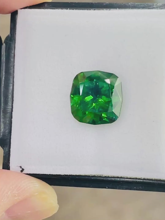 Experience the allure of unparalleled elegance with this Natural Demantoid Garnet, weighing in at an impressive 6.97 carats. Recognized for its vivid green color, this garnet is a testament to the beauty and rarity of Mother Nature's finest creations. The cushion-shaped gemstone boasts excellent cutting, which enhances its vibrant color and showcases its natural brilliance.