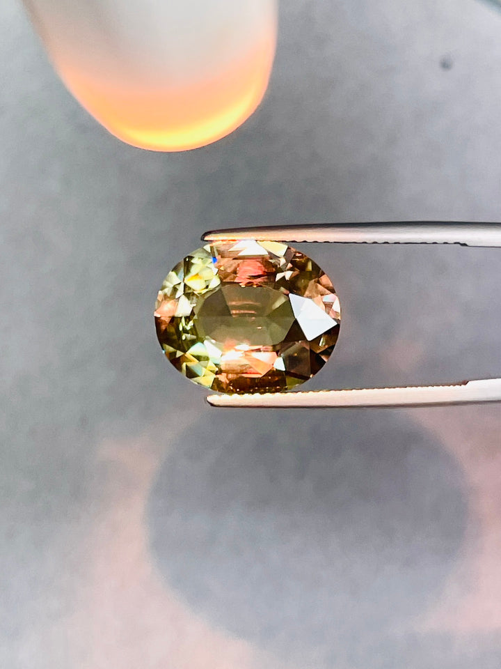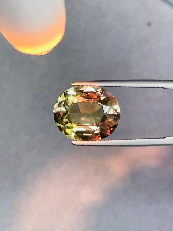 7.70Ct Natural Color Change Diaspore - Green to Orange Gemstone from Turkey