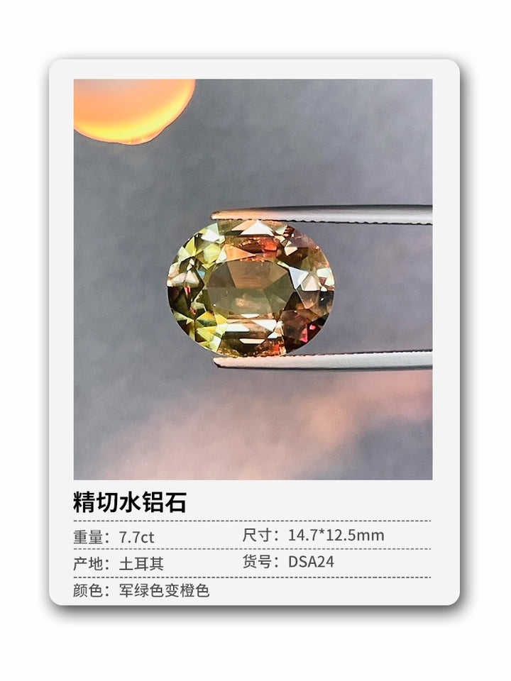 Immerse yourself in the wonder of this 7.70 carat Natural Diaspore gemstone, renowned for its impressive color-changing ability from green to orange. Originating from Turkey, this gem offers a captivating visual experience with its vibrant color shift. The stone boasts eye-clean clarity and an excellent cut, highlighting its natural sparkle and elegance. Unheated and untreated, this Diaspore maintains its authentic allure, making it a perfect addition to any premium gemstone collection for those who appreciate rare and distinctive beauty.